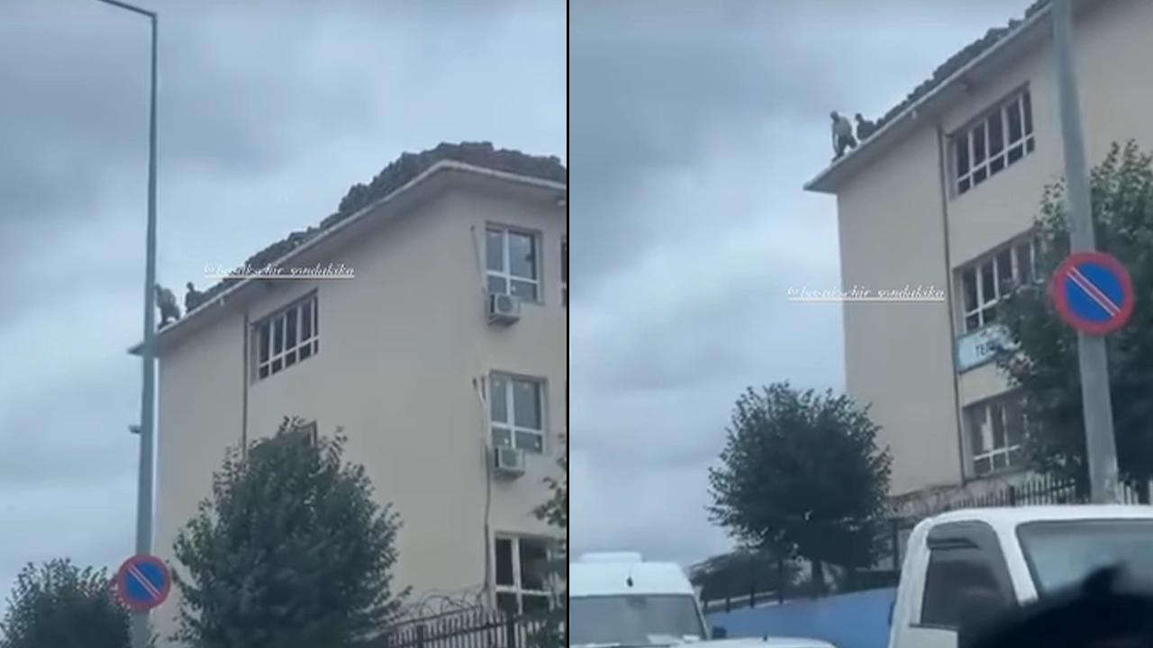 Olay, İstanbul Bayramtepe'de bulunan Tepe İlkokulu'nda yaşandı. Okulun çatısında tamir yapan işçilerin hiçbir güvenlik önlemi almadan çalışması dikkat çekti.