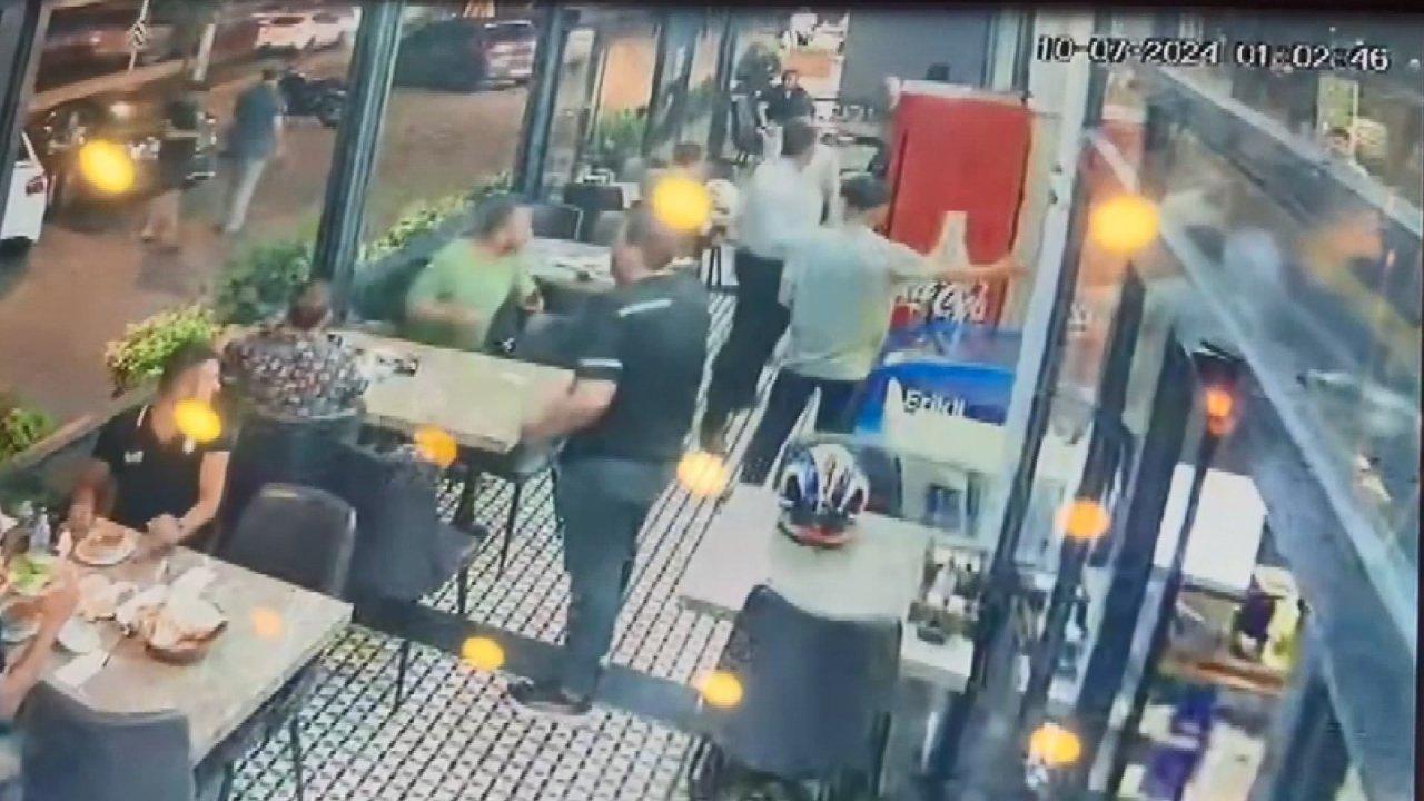 Yaşanan olay iş yerinin güvenlik kamerasına saniye saniye yansıdı. Görüntülerde müşterilerin yemek yediği sırada, yüzleri maskeli motosikletli 2 şüphelinin restorana ateş açtığı anlar görülüyor. Bu sırada restorandaki müşterilerden bazıları kurşunlardan korunmak için yere eğiliyor. Silahlı saldırının ardından 2 şüphelinin olay yerinden uzaklaştığı anlar da görüntülerde yer alıyor.