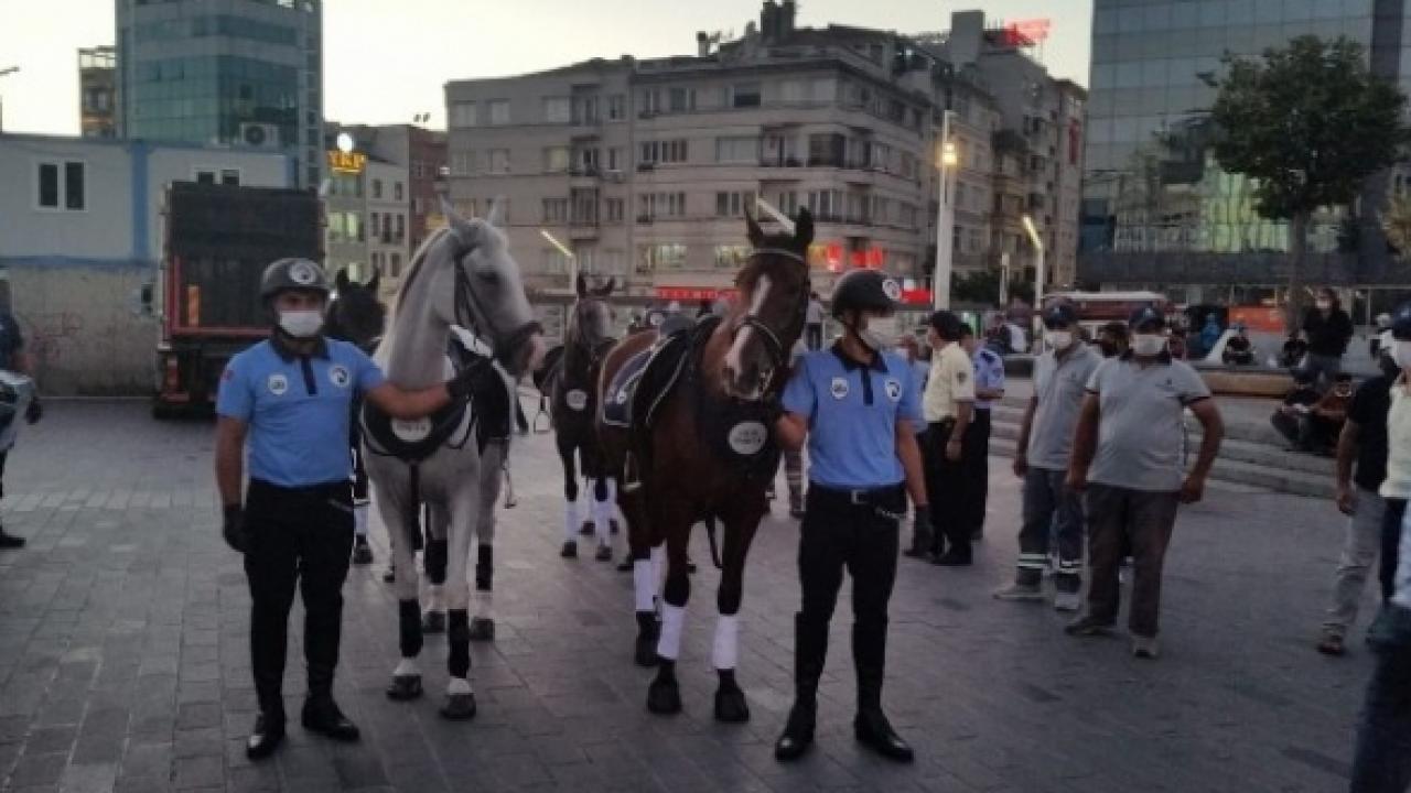 İstanbul'da Zabıta Teşkilatı'nın 192'inci yıldönümü töreni öncesi atlı zabıta ekipleri dün İstiklal Caddesi'nde prova yaptı. Taksim Meydan'da turlayan 4 atlı zabıta ekibi ile birlikte diğer zabıta personelleri de provaya katıldı. Atlı zabıtalar caddede yürüyen vatandaşlardan yoğun ilgi gördü. Öte yandan vatandaşların fotoğraf çekinmek ve gösteriyi izlemek için bir anda kalabalıklaştığı alanlarda zabıta ve polis ekipleri sosyal mesafe konusunda vatandaşlara uyarılarda bulundu. Zabıta Teşkilatı'nın 192'nci yıldönümü nedeniyle Taksim Meydan'da tören düzenleneceği belirtildi.