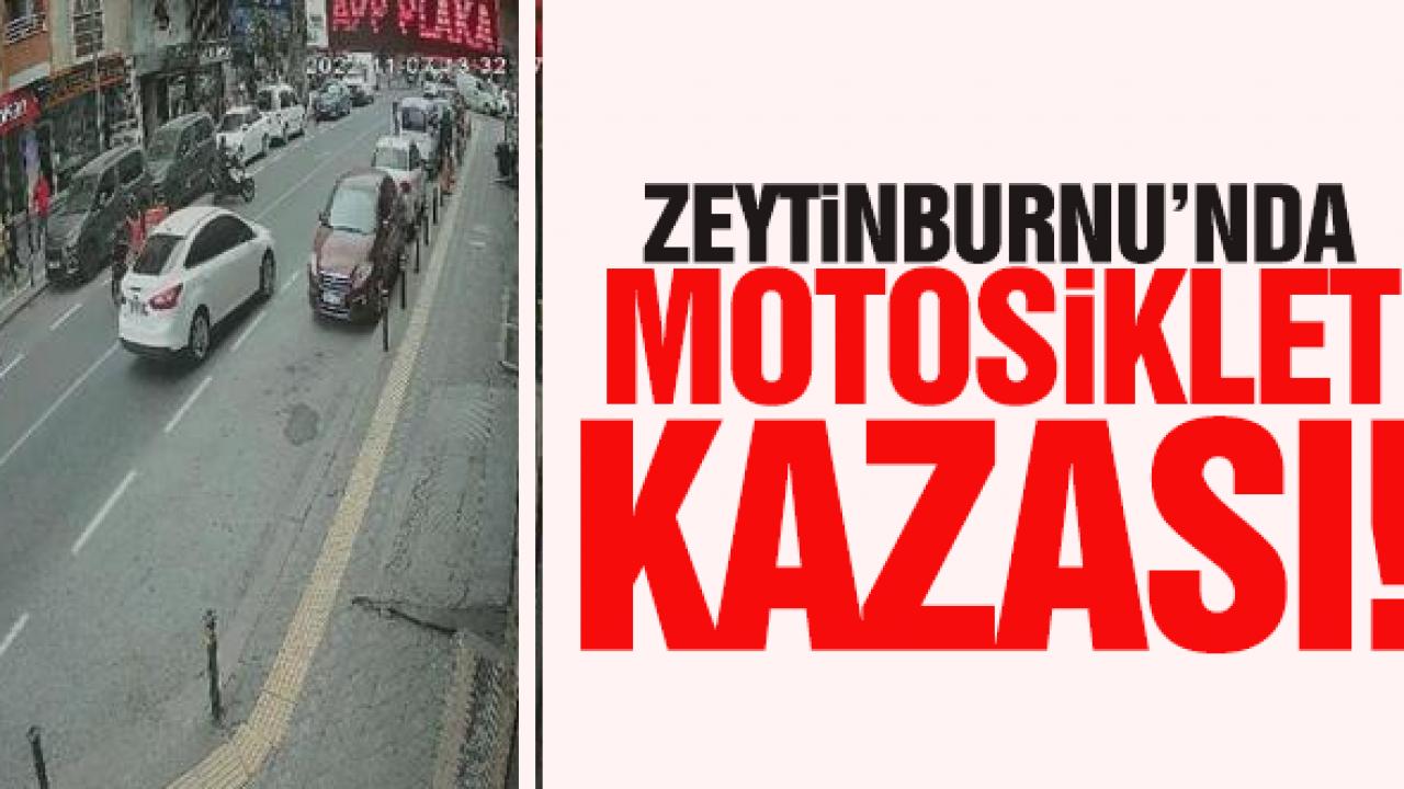 ZEYTİNBURNU'nda sürücüsünün, yola kontrolsüz bir şekilde çıkan motokuryeye çarpmamak için hamle yaptığı motosiklet devrildi. Sürücünün motosikletiyle yere savrulduğu kaza anı güvenlik kamerasına yansıdı.