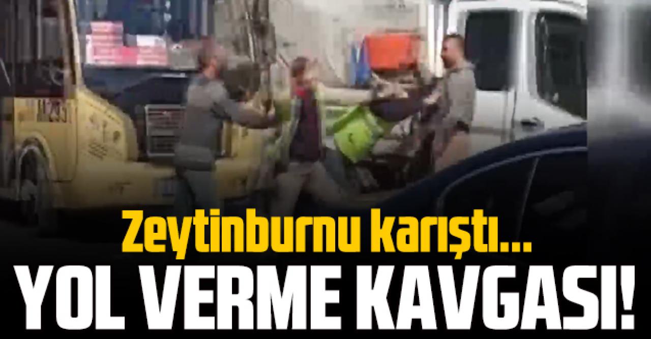 Zeytinburnu'nda, minibüs şoförü ile kamyonetteki işçiler arasında trafikte yol verme kavgası yaşandı. Yumruk yumruğa kavga, bir vatandaş tarafından cep telefonu kamerası ile kaydedildi.