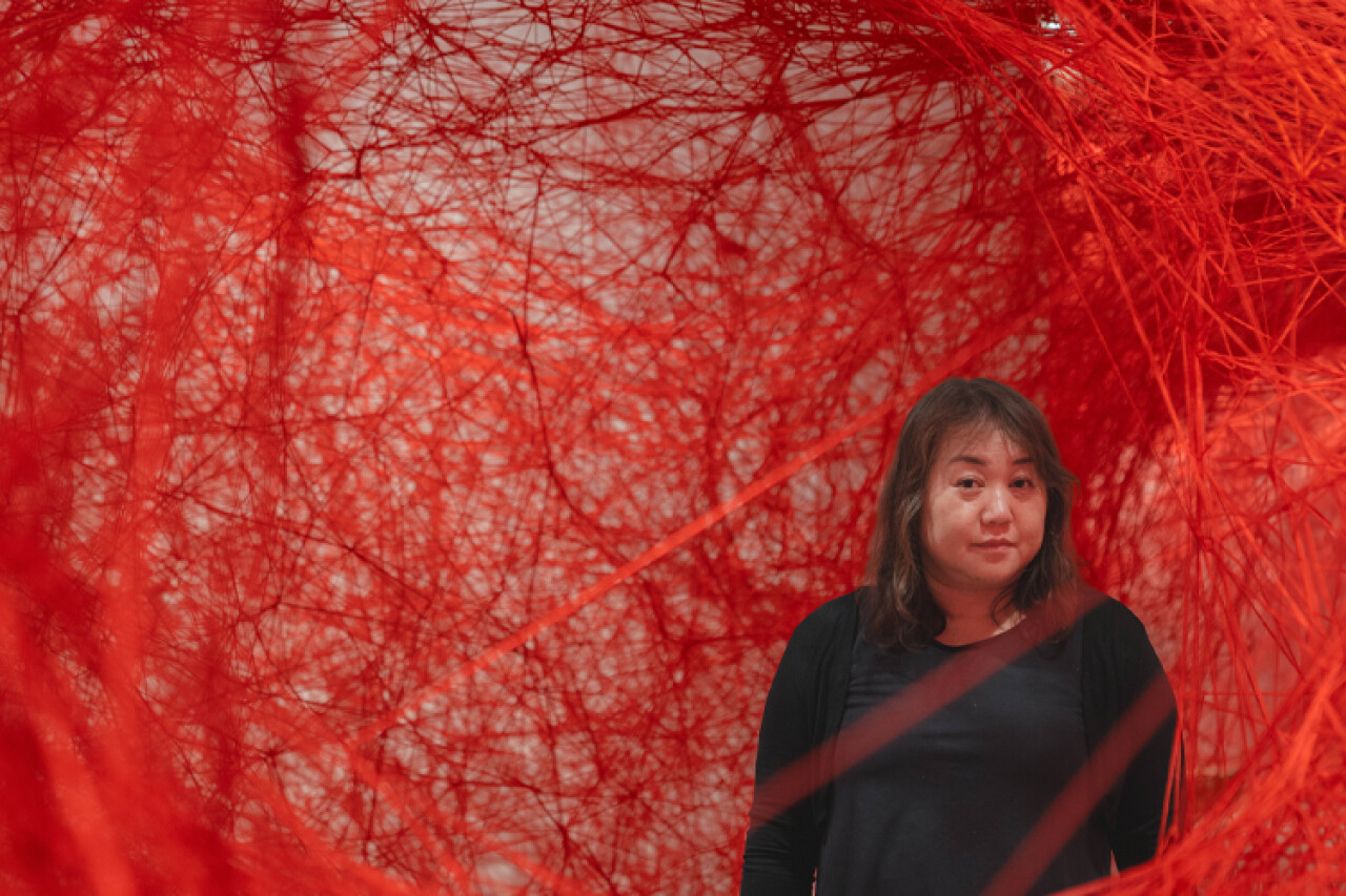Ayakkabı, anahtar, yatak, sandalye ve elbise gibi sıradan nesneleri toplayarak ve bunları iplikten oluşturduğu devasa yapılarla sararak hafıza ve bilinç kavramlarını yeniden tanımlayan Chiharu Shiota, 1972’de Osaka’da doğdu. Çalışmalarına Berlin’de devam eden Shiota, yerleştirmeleriyle "yokluk içinde var olma" hissini araştırırken, heykellerinde, çizimlerinde, performans videolarında, fotoğraflarında ve tuvallerinde de insanın varoluşuyla ilişkilendirdiği soyut duyguları gözler önüne seriyor.