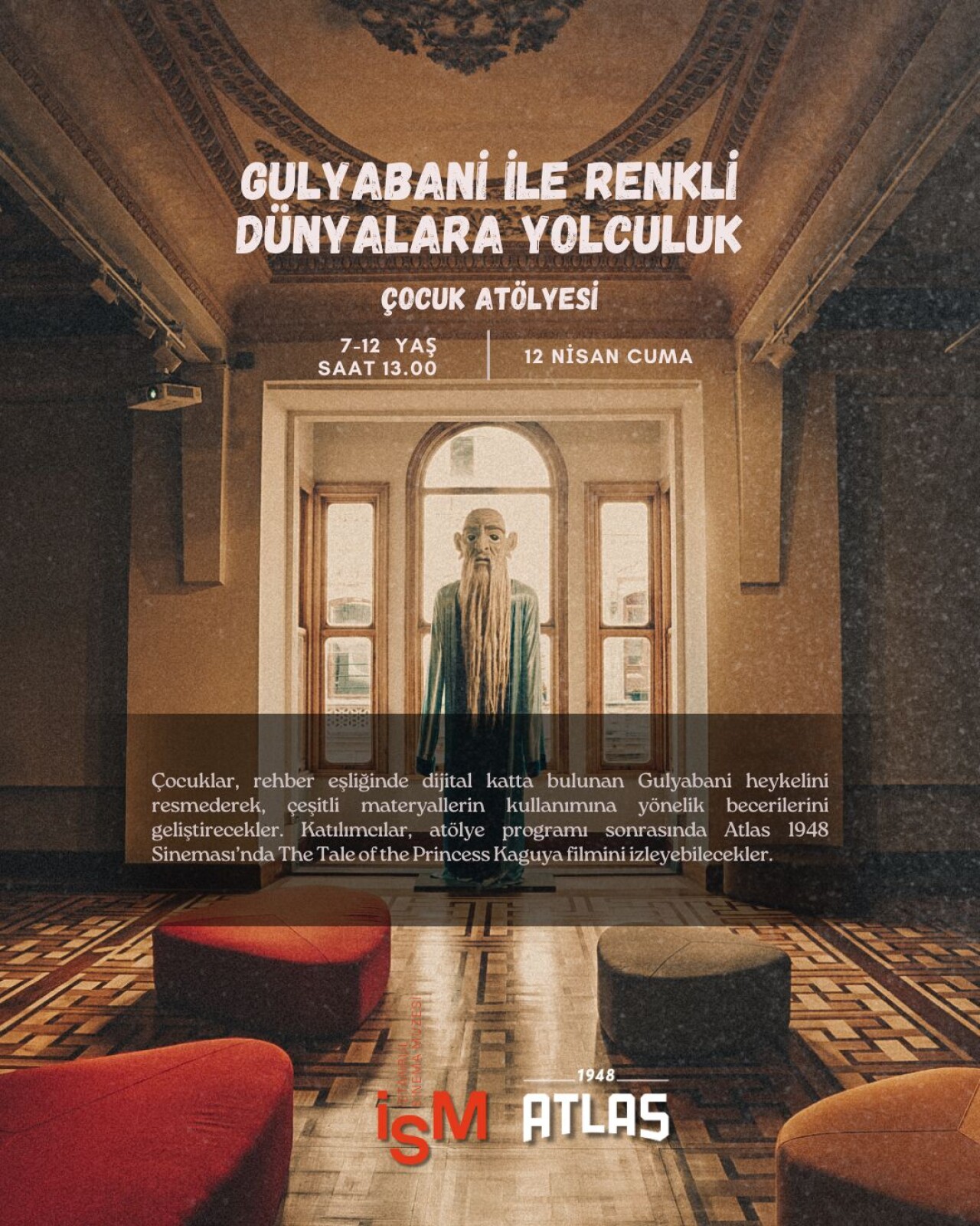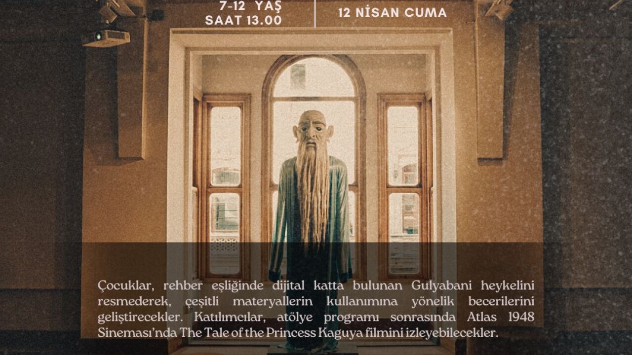 12 Nisan Cuma günü saat 13.00’te ise; 7-12 yaş aralığındaki çocuklar, rehber eşliğinde dijital katta bulunan Gulyabani heykelini resmederek, çeşitli materyallerin kullanımına yönelik becerilerini geliştirecekler.
