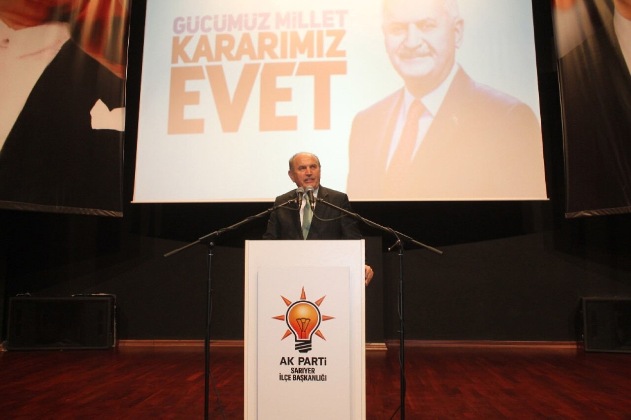 İstanbul Büyükşehir Belediye Başkanı Kadir Topbaş, AK Parti Sarıyer İlçe Başkanlığının düzenlediği referandum toplantısında Sarıyerlilerle bir araya geldi. Sarıyer Kültür Merkezinde düzenlenen toplantıya Başkan Topbaş’ın yanı sıra Sarıyer Belediyesi Meclis üyeleri, sivil toplum kuruluşları temsilcileri, muhtarlar, kanaat önderleri ve çok sayıda vatandaş katıldı. Toplantının yapılacağı salona girişinde alkışlarla karşılanan Başkan Topbaş yaptığı konuşmada, “Bu referandum sürecinde AK Parti ve Milliyetçi Hareket Partisinin verdiği destekle inanıyorum ki halka iyi anlatabilirsek, hatta bununla ilgili kararınızı ‘evet’ olarak verirseniz, vermeniz de yetmez çevrenizi de ikna ederseniz Türkiye’nin geleceğini birlikte hazırlamış oluruz. Bir dönüm noktası, bir milat konuşuyoruz. FETÖ’nün nasıl yapılandığını, ülkeyi çökertmek için hangi birimde, hangi alanda nasıl şekillendiğini görüyoruz. İşte bunların atılmasının yolu güçlü bir iradeden, güçlü bir yönetim oluşturmaktan geçiyor” dedi.