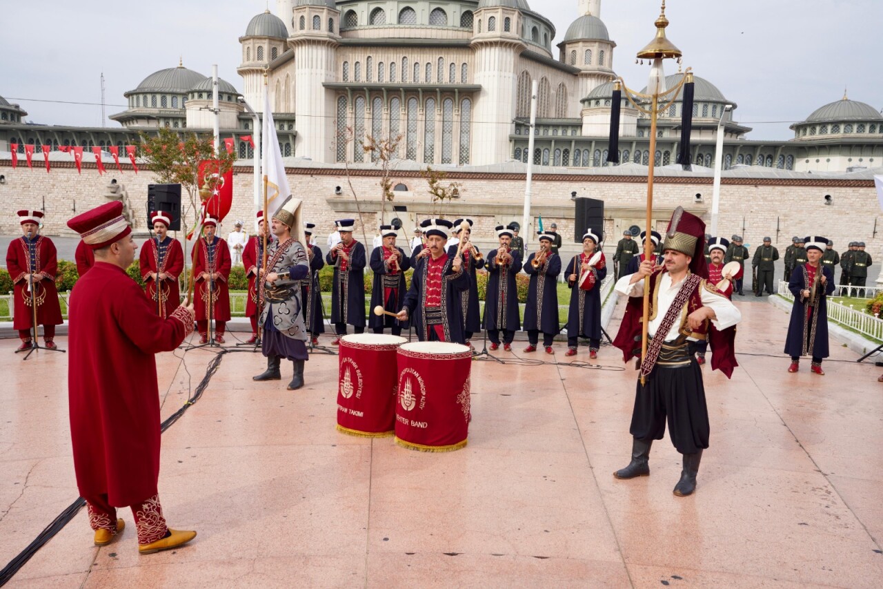 İstanbul Valisi Davut Gül, 1. Ordu ve İstanbul Garnizon Komutanı Orgeneral Metin Tokel ve İstanbul Büyükşehir Belediye (İBB) Başkanı Ekrem İmamoğlu’nun katılımıyla gerçekleştirilen tören, saygı duruşunda bulunulması ve İstiklal Marşı’nın okunmasıyla başladı. Törende sırasıyla; Gül, Sivri ve İmamoğlu, kurumları adına Taksim Cumhuriyet Anıtı’na çelenk bıraktı. Cumhurbaşkanı Recep Tayyip Erdoğan’ın mesajının okunmasının ardından önce İmamoğlu, sonra Gül, Anıt Özel Defteri’ne yazdıkları mesajları okudu.