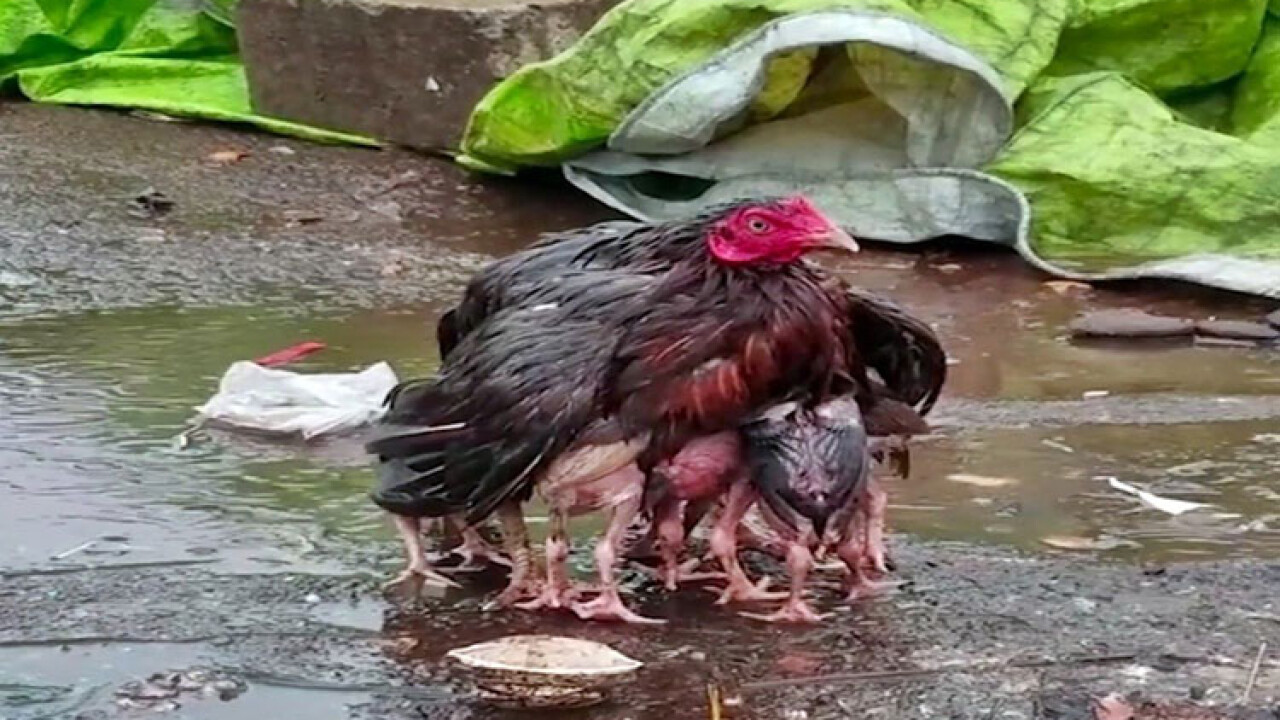 Hindistan'da kanatlarını bir şemsiye gibi açarak yavrularını yağan yağmurdan koruyan anne tavuğun görüntüsü sosyal medyada ilgi odağı haline geldi.
