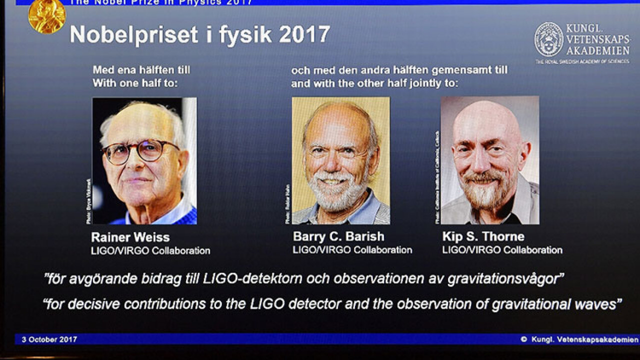 2017 Nobel Fizik Ödülü, yerçekimi dalgaları üzerine araştırma yapan Rainer Weiss, Barry C. Barish ve Kip S. Thorne adlı bilim adamlarına verildi.