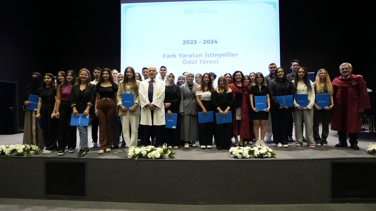 “Fark Yaratan İstinyeliler” projesinde akademik ve idari personeller ile öğrencilerin yürüttüğü proje, girişim ya da farklı alanlardaki çalışmalar ödüllendiriliyor. Hayatı anlamlandırmanın, yenilikçi fikirler üretmenin, harekete geçmenin ve liderlik etmenin yeri olarak nitelendirilen İstinye Üniversitesi, sınıfta, laboratuvarda, stüdyoda, atölyede, sahnede, sahada, bahçede, sanal dünyada, akademik ve idari üyeleri ile öğrencilerinin birlikte çalıştığı, birbirini desteklediği ve beraber harika işler başardığı yer olmayı hedefliyor. Yaşama dokunan olağanüstü işler başarmak isteyenlerin adresi olma amacıyla çalışmalarını sürdüren İstinye Üniversitesi, bu amaca katkı sunanları “Fark Yaratan İstinyeliler” projesi kapsamında ödüllendiriyor. 2024-2025 akademik yılı açılış programı, “2023-2024 Akademik Yılı Fark Yaratan İstinyeliler Ödül Töreni” ile fark yaratan İstinyelilere ödüllerinin takdim edilmesinin ardından sona erdi.