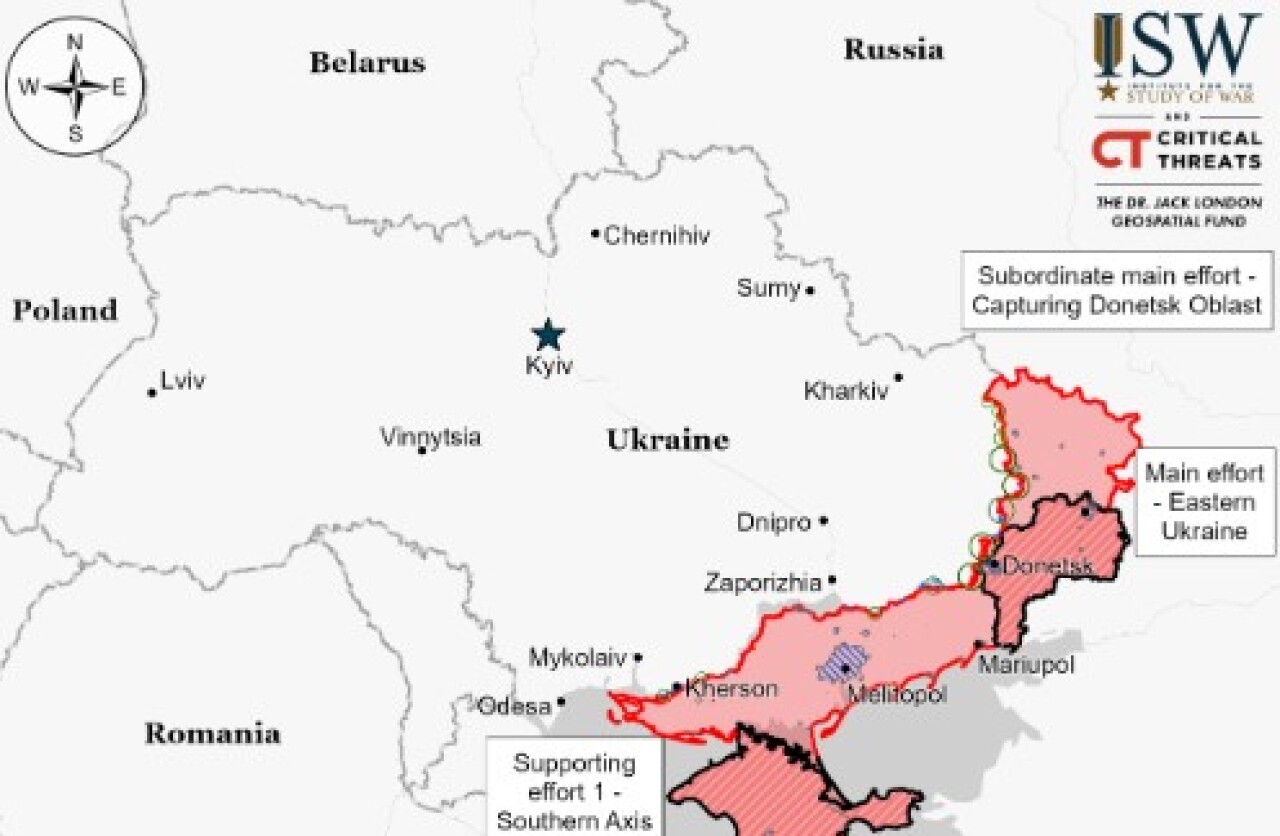 Rus askeri blog yazarları Ukrayna güçlerinin Cuma günü Arkhanhelske'den çekildiğini belirtirken, ISW, Ukrayna'nın söz verilen ABD silah teslimatını beklerken zaman kazanmak istediklerine inanıyor.