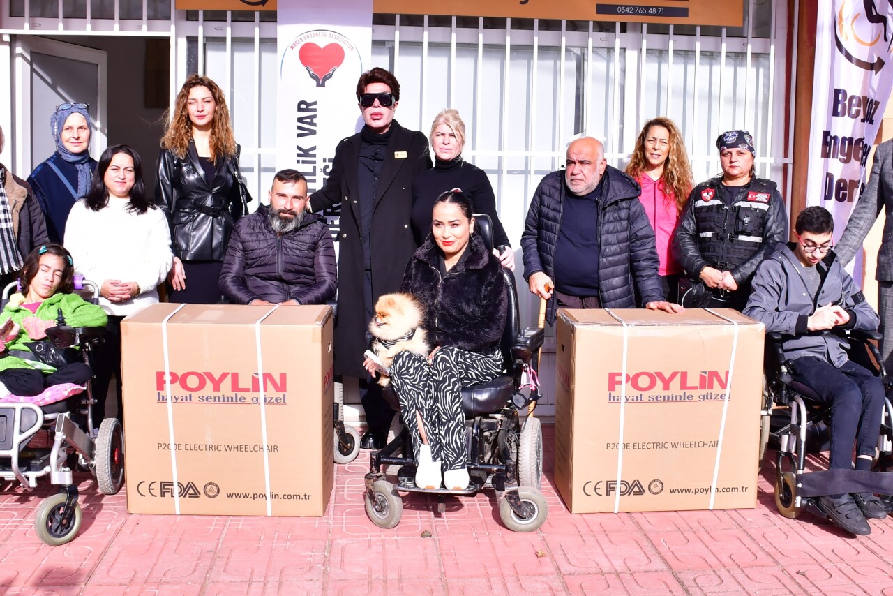 Dernek başkanlığını iş insanı Menekşe Kankavi'nin yaptığı çalışmalarını sürdüren "Dünyada İyilik Var Derneği" kurucu üye hayırsever sanatçı Yılmaz Morgül'ün sahne çalışmalarında hayranlarından topladığı bağışlarla alınan altı adet akülü tekerlekli sandalyeyi hak sahibi engelli bireylere verdi.