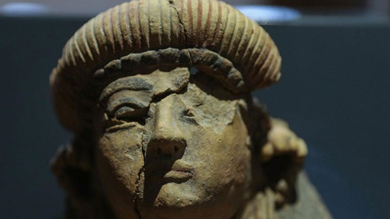 Milattan önce 300 ile 600 yılları arasındaki döneme tarihlenen pişmiş topraktan yapılma 28 santimetrelik eserde, Athena'nın oval yüz, belirgin burun, ağız, çene ve siyah saçlarla tasvir edildiği görülüyor.
