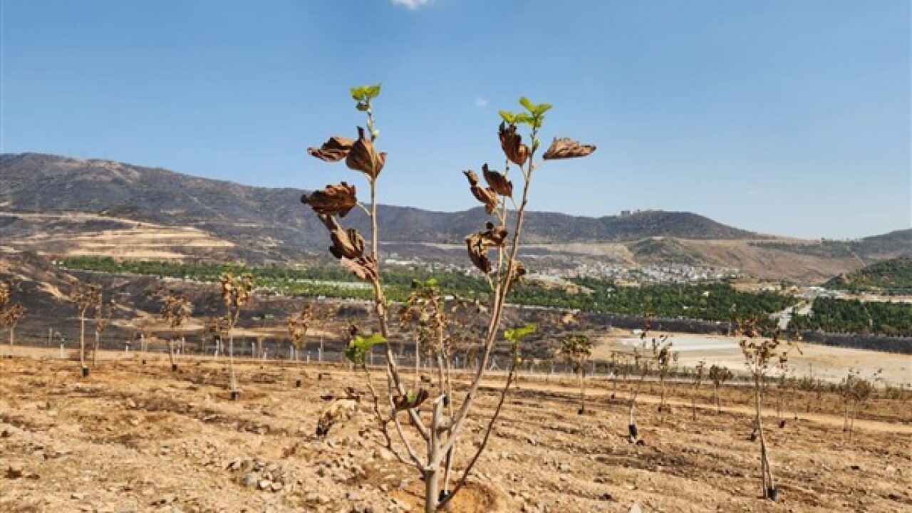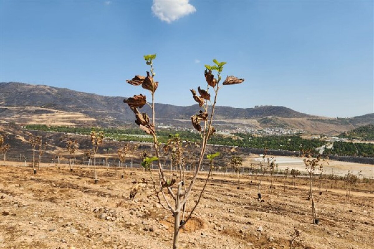 İzmir Büyükşehir Belediyesi'nin yangın bölgesinde yoğun bakım çalışmaları başlattığı Sancaklı Ağaçlandırma Sahası'nda 3 günlük tedavi sürecinin ardından ağaçlarda yapraklar yeniden yeşermeye başladı.