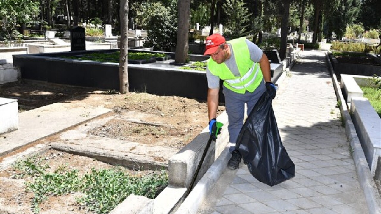 Yaklaşık 22 milyon metrekarelik alanda mezarlıklar otlardan arındırıldı, ara yollar temizlendi, çeşmeler yıkandı ve ağaçlar budandı. Mezarlıkları vatandaşların ziyaretine hazır hale getiren ekipler, bayram tatili süresince de 7 gün 24 saat hizmet verecek.