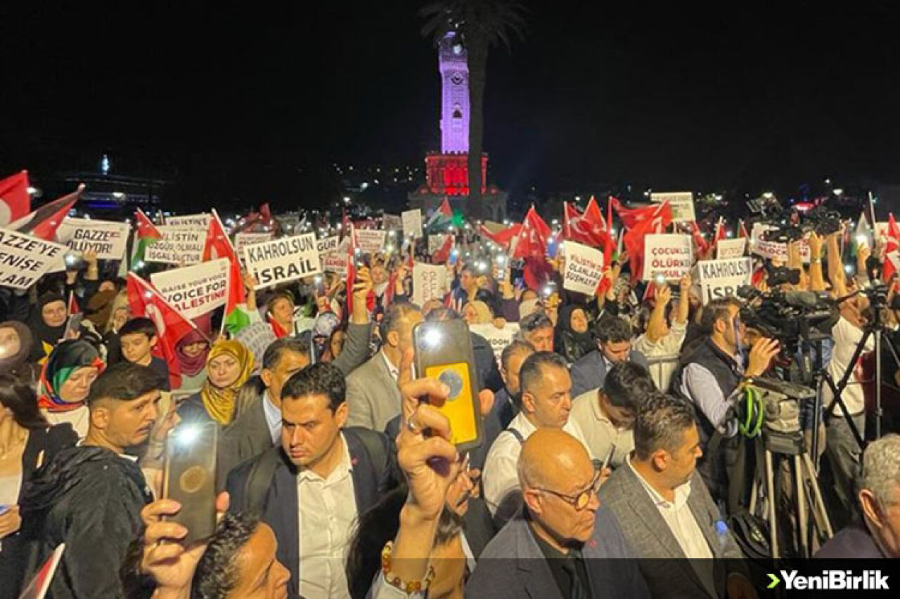 İzmir Sivil Toplum Kuruluşları Platformu ve Milli İrade Platformu tarafından Konak Meydanı'nda düzenlenen Filistin'e destek mitingine katılan Yalçın, Kudüs'ün 75 yıldır acının başkenti, Gazze'nin ise 16 yıldır açık hava hapishanesi ve abluka altında olduğunu söyledi.