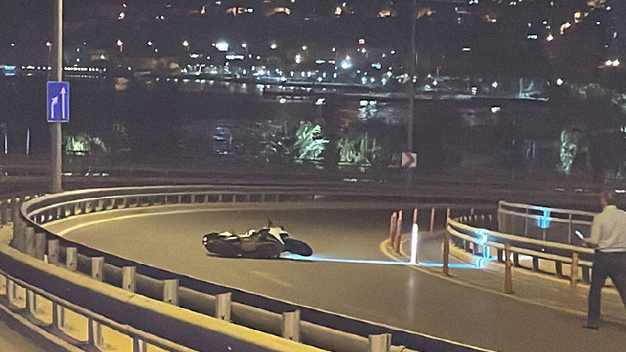 Adnan Kahveci Köprülü Kavşağı'nda Bayraklı istikametinden Konak yönüne giden ve sürücüsü henüz belirlenemeyen 09 ACT 717 plakalı motosiklet, kontrolden çıkarak devrildi.