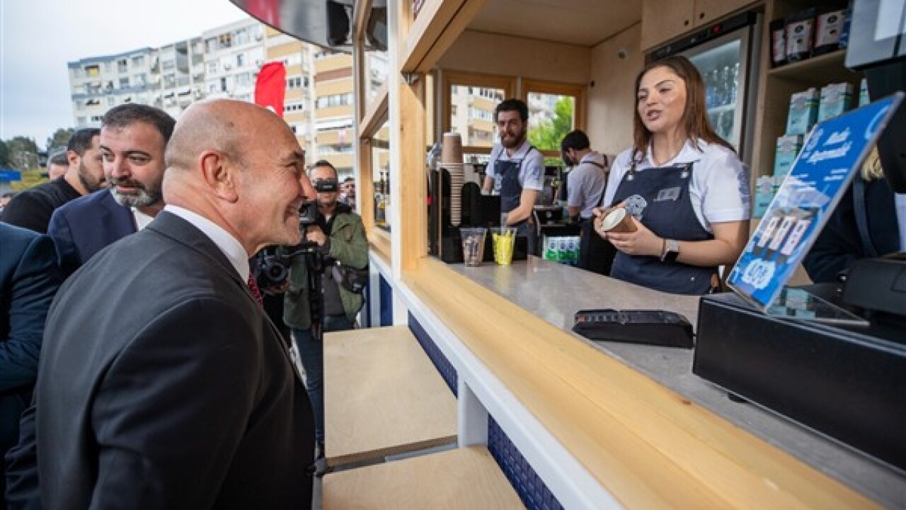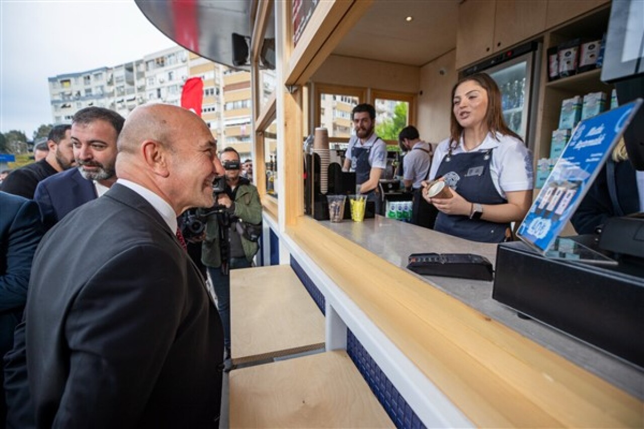 İzmir Büyükşehir Belediye Başkanı Tunç Soyer’in gençlik kenti İzmir hedefiyle Konak ve Bornova’da metro istasyonu çıkışlarında kurulan İzmirli Kahve’nin üçüncü şubesi Fahrettin Altay metro istasyonu karşısında açıldı.
