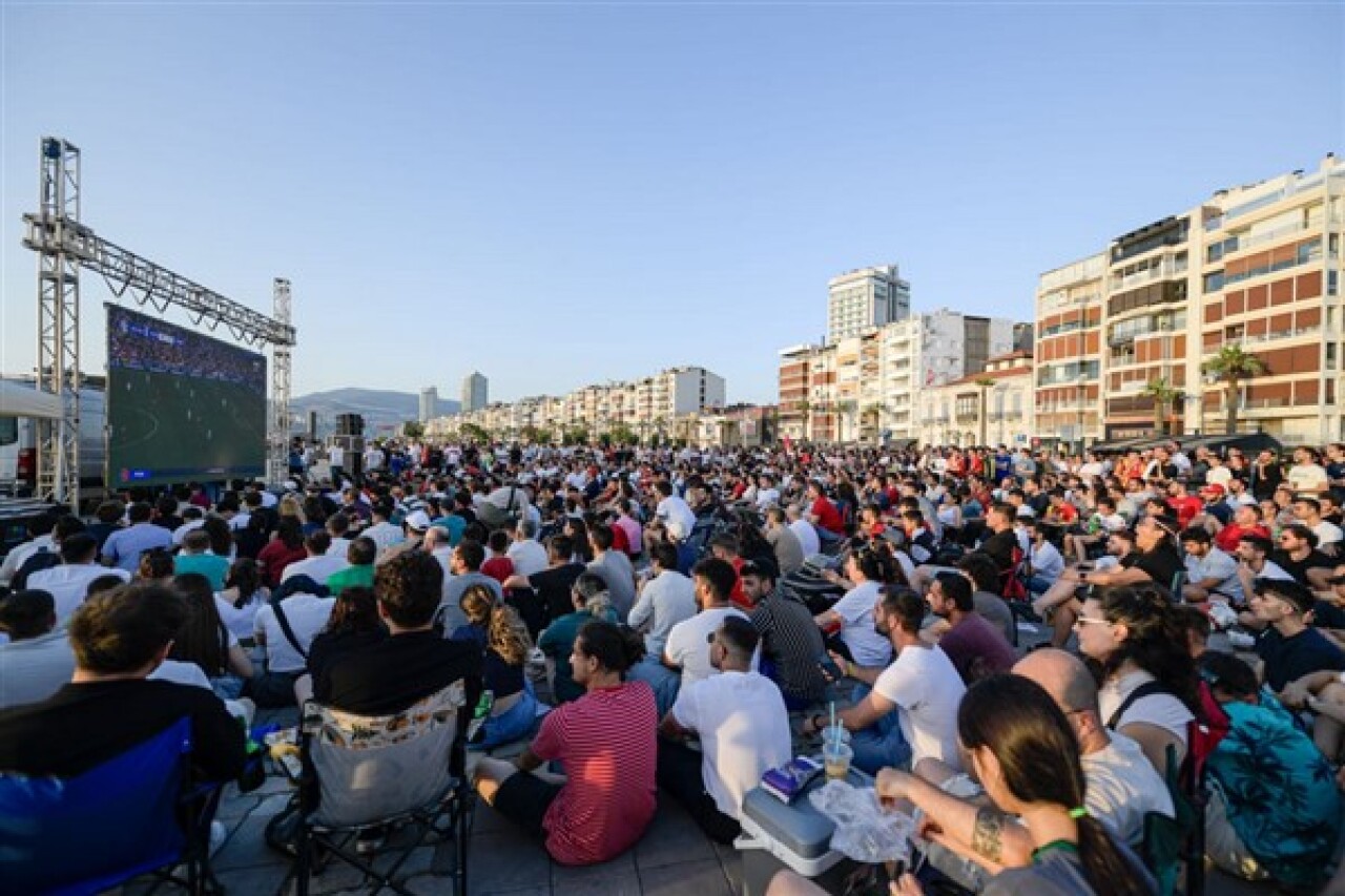 Türkiye A Milli Futbol Takımı’nın Almanya’da düzenlenen Avrupa Şampiyonası’ndaki ikinci maçında Portekiz ile karşı karşıya gelmesi tüm İzmir’de heyecan yarattı. İzmir Büyükşehir Belediye Başkanı Dr. Cemil Tugay’ın İzmirli futbolseverlere “Milli Takım Sahada, İzmirliler Bir Arada” sözleriyle yaptığı duyuru sonrasında Karşıyaka Zühtü Işıl ve Alsancak Gündoğdu Meydanları ile Göztepe Denizatı Parkı’nda dev ekranlar kuruldu. Her biri kendi takımına gönül vermiş fakat tek vücut ay yıldız olan binlerce futbolsever Milli Takım’a ekranların karşısında destek verdi. İlk müsabakayı Gürcistan karşısında 3-1 gibi net bir galibiyetle tamamlayan milliler, Portekiz’e 3-0 mağlup oldu. Gözler grubun son karşılaşması olacak Çekya sınavına çevrildi.