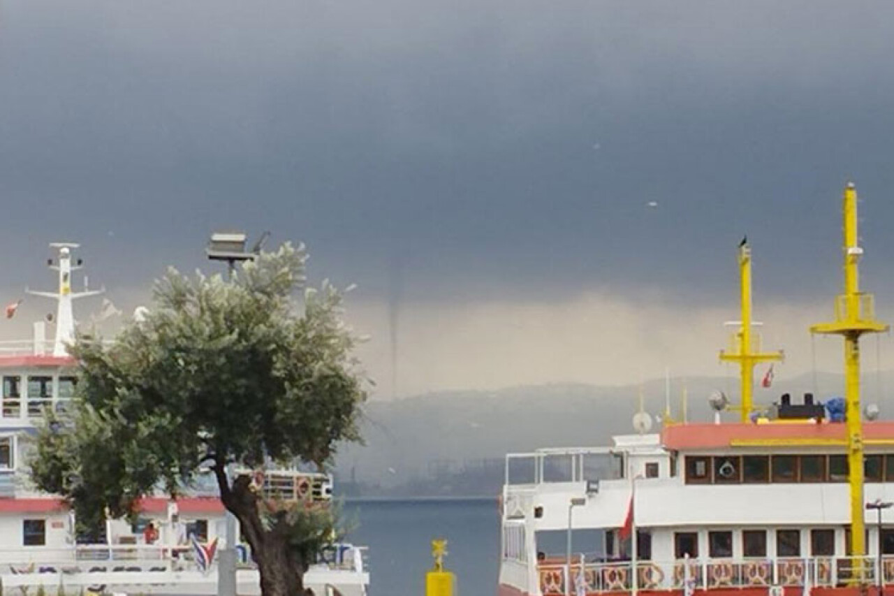 Yağışın ardından Gebze ilçesi Eskihisar açıklarında denizde hortum meydana geldi.