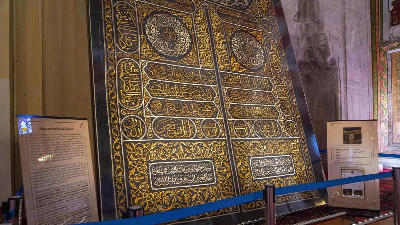 İl Müftüsü Ercan Aksu, Kabe örtüsünün her yıl Kurban Bayramı arifesinde yenisiyle değiştirildiğini söyledi. Eski Cami'de sergilenen örtünün de 1988'de değiştirilen örtülerden olduğunu ifade eden Aksu, "Kabe örtüsü 8 parçadan oluşmaktadır, bunlardan bir tanesi de Kabe kapısını oluşturan perdedir. Buna 'Burka' deniyor. 70 kilogram ağırlığındaki, saf ipek, 6 metre boyunda 3 metre enindeki bu örtüde başta Fatiha Suresi olmak üzere kıblenin değişimi ve değişik ayetler bulunmakta. Allah'ın isimleri bulunmaktadır." dedi.