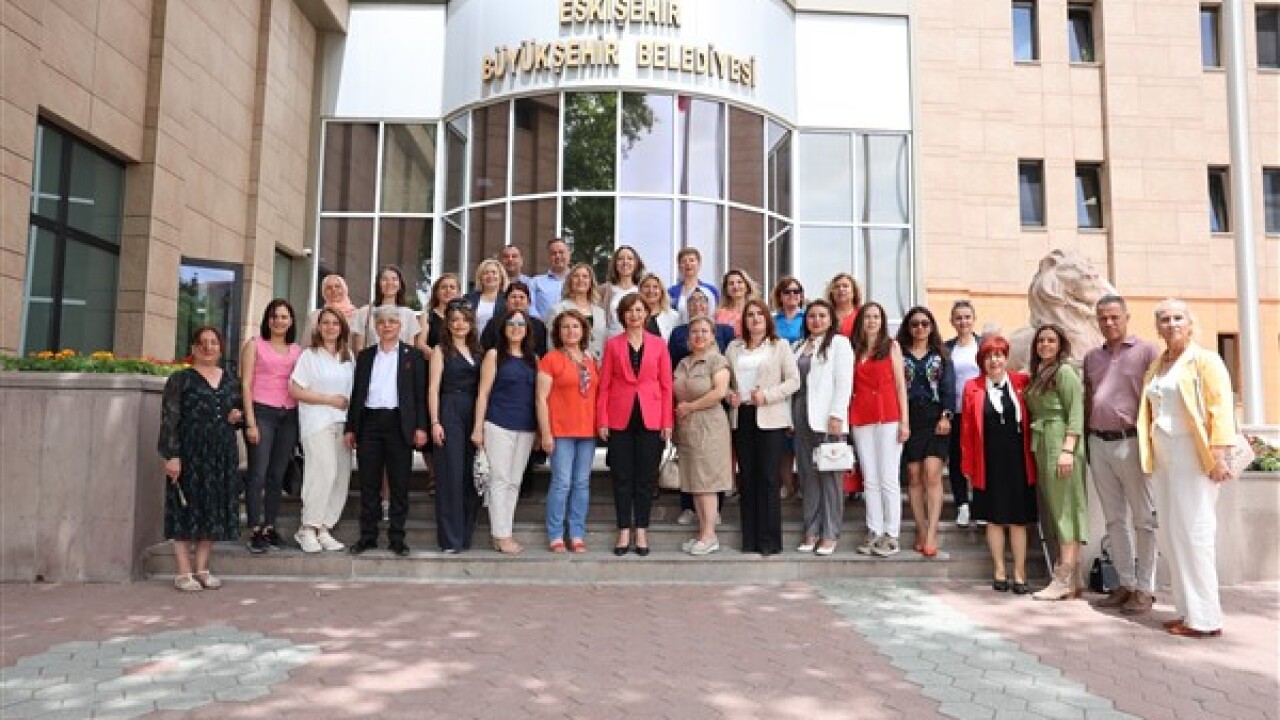 Odunpazarı, Tepebaşı, Sivrihisar ve Beylikova ilçesinin kadın mahalle muhtarları, Eskişehir Büyükşehir Belediye Başkanı Ayşe Ünlüce'yi ziyaret etti.