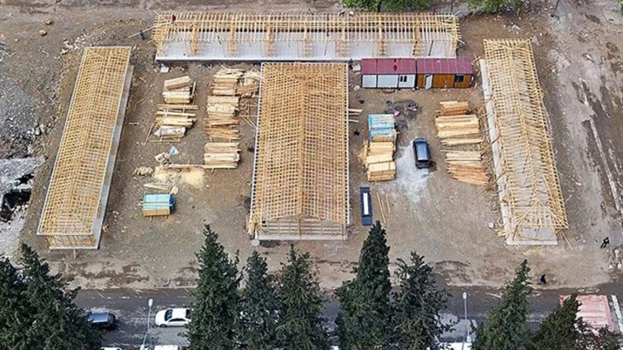 Kentin ticaret hayatının merkezi konumunda bulunan ve depremlerde ağır hasar alan Kahramanmaraş'taki Azerbaycan Bulvarı'nda, dükkanları yıkılmış ya da ağır hasar almış esnaf için ahşap malzemeler kullanılarak dükkanlar kuruluyor.