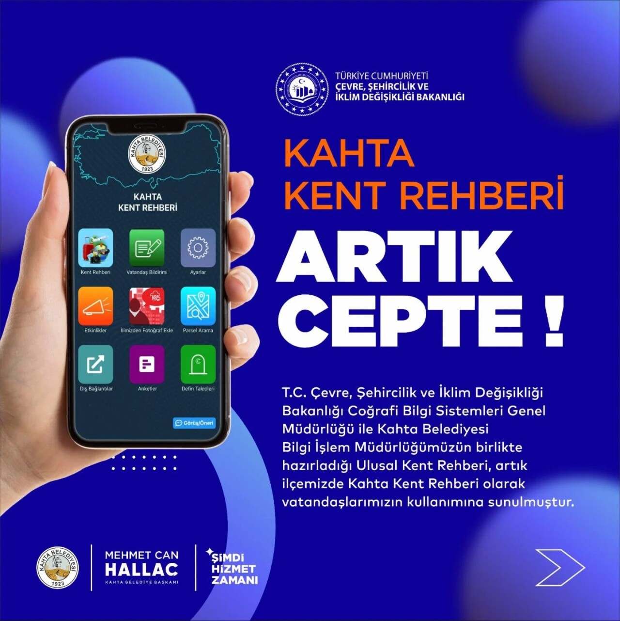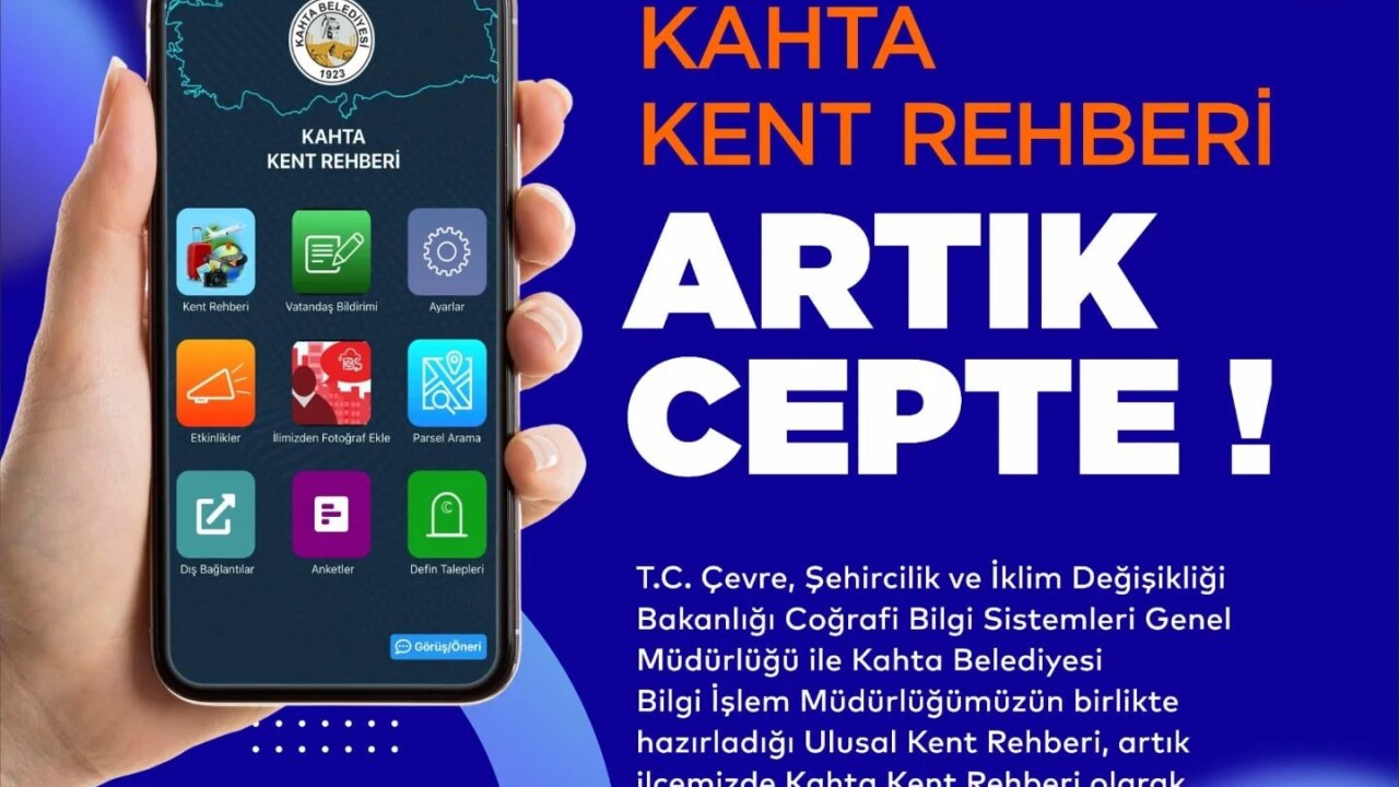 Kahta Belediyesi, vatandaşların ilçeye dair her türlü bilgiye hızlı ve kolay bir şekilde ulaşmasını sağlayacak Kahta Kent Rehberi uygulamasını hizmete açtı. T.C. Çevre, Şehircilik ve İklim Değişikliği Bakanlığı Coğrafi Bilgi Sistemleri Genel Müdürlüğü ile Kahta Belediyesi Bilgi İşlem Müdürlüğü iş birliğiyle hazırlanan rehber, kullanıcı dostu arayüzü ve kapsamlı özellikleriyle dikkat çekiyor.