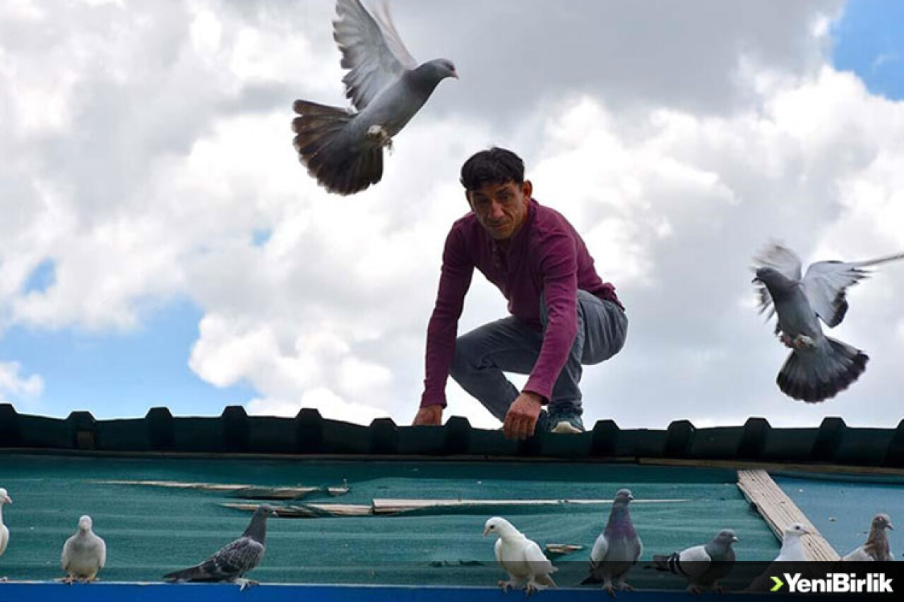 Beslediği güvercinlerin uçuşunu hayranlıkla izleyen Tezkaç, bu şekilde moral buluyor.