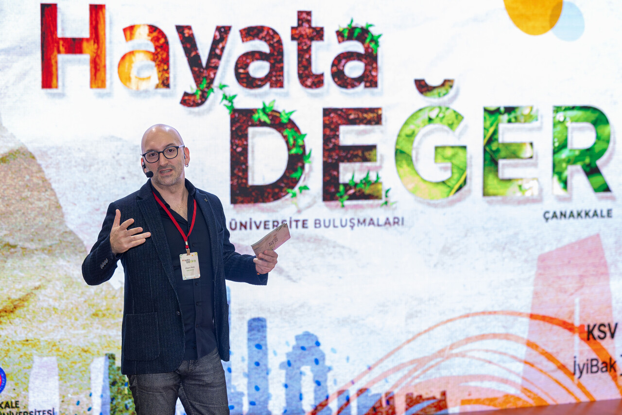 Moderatörlüğünü Onarım Atölyesi Kurucusu Ekin Al’ın üstlendiği Hayata Değer Buluşmasının açılış konuşmasını, Çanakkale 18 Mart Üniversitesi Rektörü Prof. Dr. Cüneyt Erenoğlu yaptı. Üniversite öğrencilerinin yoğun ilgisiyle gerçekleşen Hayata Değer Buluşmasında, geçmişin hatalarından ders alınarak çok daha sorumlu bir yaklaşımın benimsenmesi, yeni paradigmanın sadece ekonomik kazanç değil, insan hakları, çevre ve sosyal adaleti önceliklendiren değerleri benimsemesi gerektiği konuşuldu. Sosyal girişimciler ve gençler paradigma değişiminin merkezinde… Hayata Değer Buluşması birbirinden çarpıcı oturum ve konuşmalara sahne oldu.