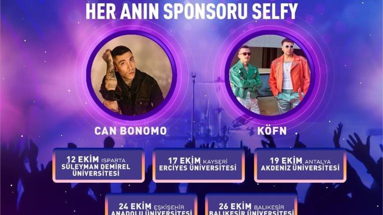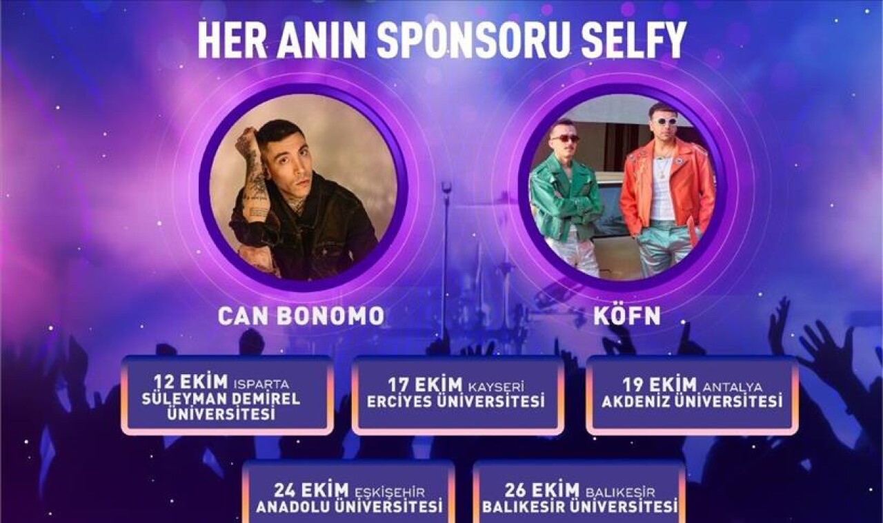 Türk Telekom’un gençlik markası Selfy, eğlenceyi ve müziği üniversite kampüslerine taşıyor. ‘Selfy Kampüste’ konseptiyle 12-26 Ekim tarihleri arasında üniversitelerde; konserler, oyun turnuvaları, çeşitli yarışmalar ve birbirinden renkli aktiviteler düzenlenecek. KÖFN ve Can Bonomo’nun en sevilen şarkılarını gençlerle birlikte seslendireceği Selfy Fest23’te, ayrıca Türk Telekom yöneticileri ve ekranların sevilen isimleri kariyer sohbetlerinde öğrencilerle buluşacak.