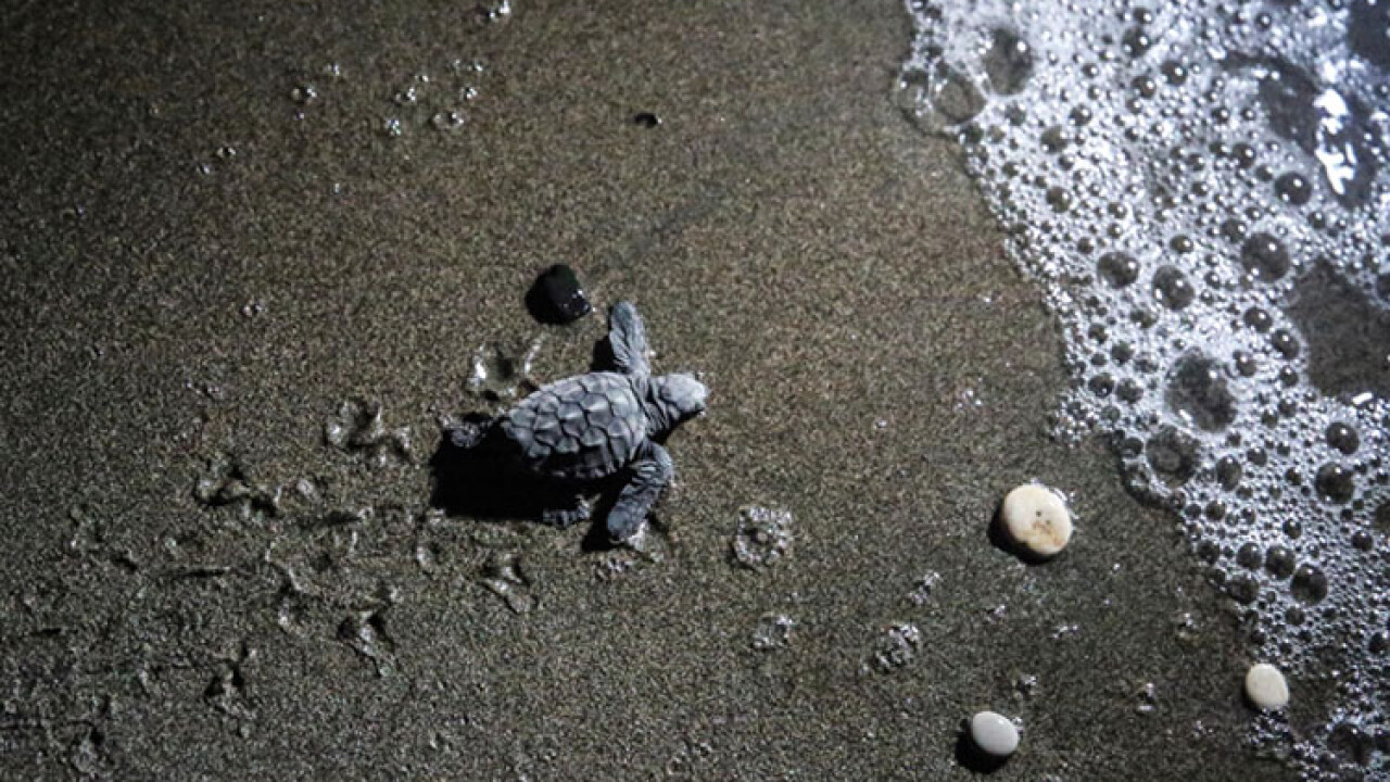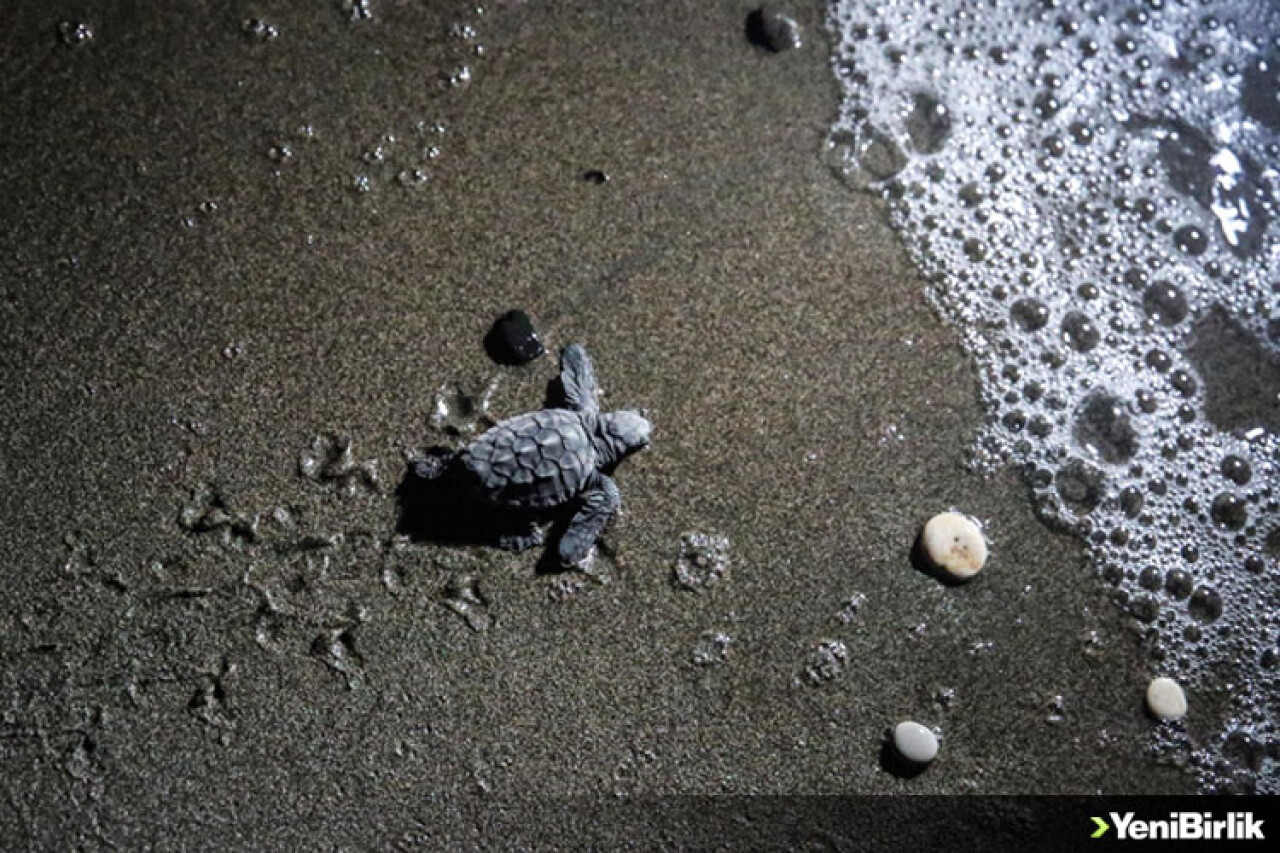 Denize ulaşmak için kumsala ilk adımlarını atan minik kaplumbağaların gece saatlerindeki zorlu yolculuğu, Anadolu Ajansı ekibince görüntülendi.