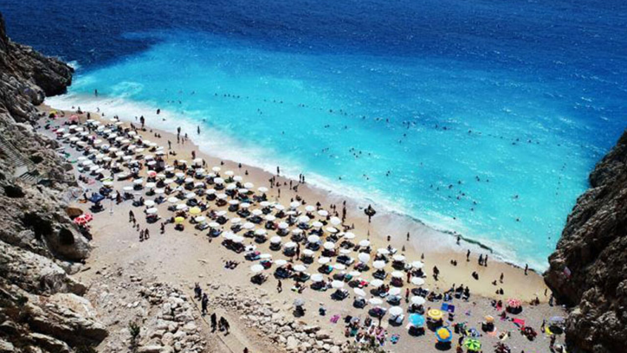 Antalya'nın gözde ilçelerinden Kaş'taki dünyaca ünlü Kaputaş Plajı, suyunun benzersiz turkuaz rengiyle her gün yüzlerce yerli ve yabancı turisti ağırlıyor.