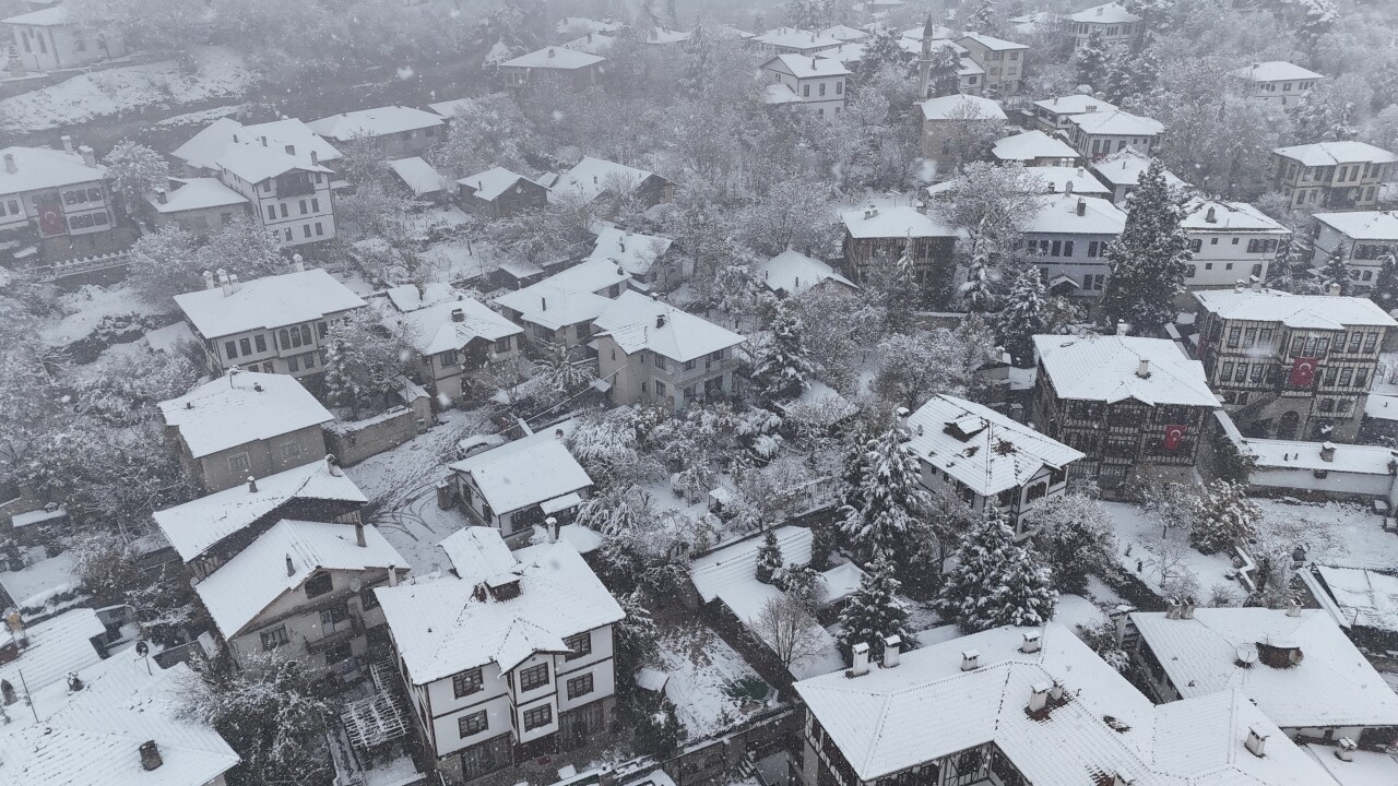 UNESCO Dünya Mirası Listesi'nde yer alan tarihi konaklarıyla ünlü Safranbolu ilçesi de yağışın ardından beyaz örtüyle kaplandı.