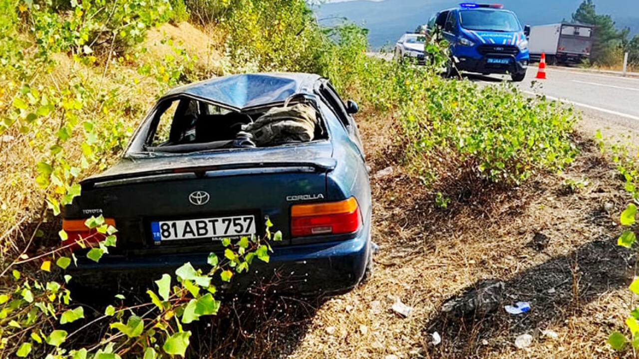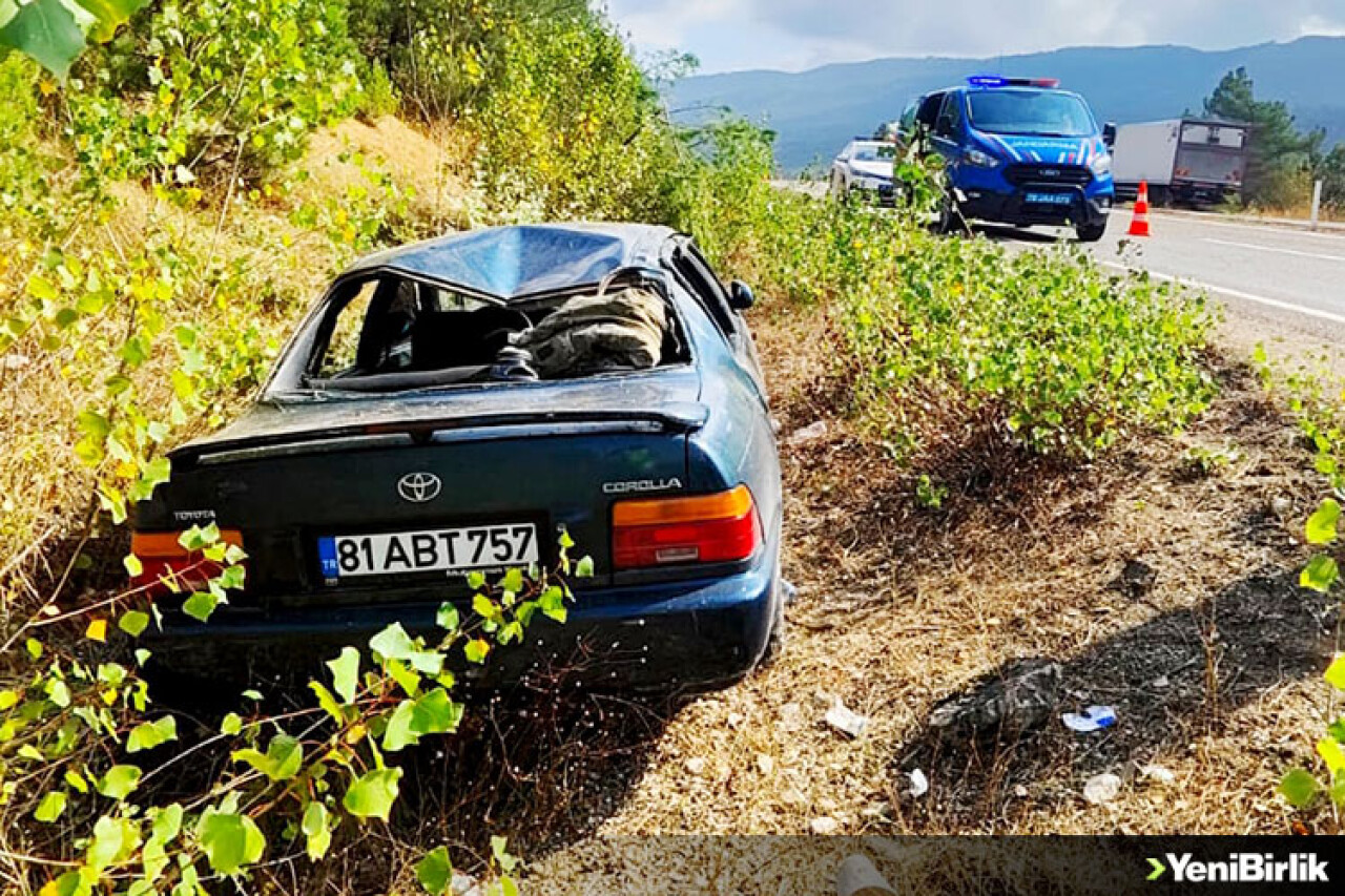 Devrilen otomobilin sürücüsü M.K. ile beraberindeki A.K. ve F.K. yaralandı.