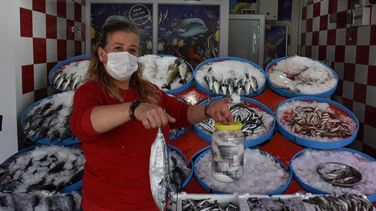 Ordu'nun Perşembe ilçesinde 22 yıldır balıkçılıkla uğraşan 45 yaşındaki Filiz Yazkan, tezgahındaki balıkların satışının yanı sıra hamsi ve palamudun salamurasını hazırlıyor.