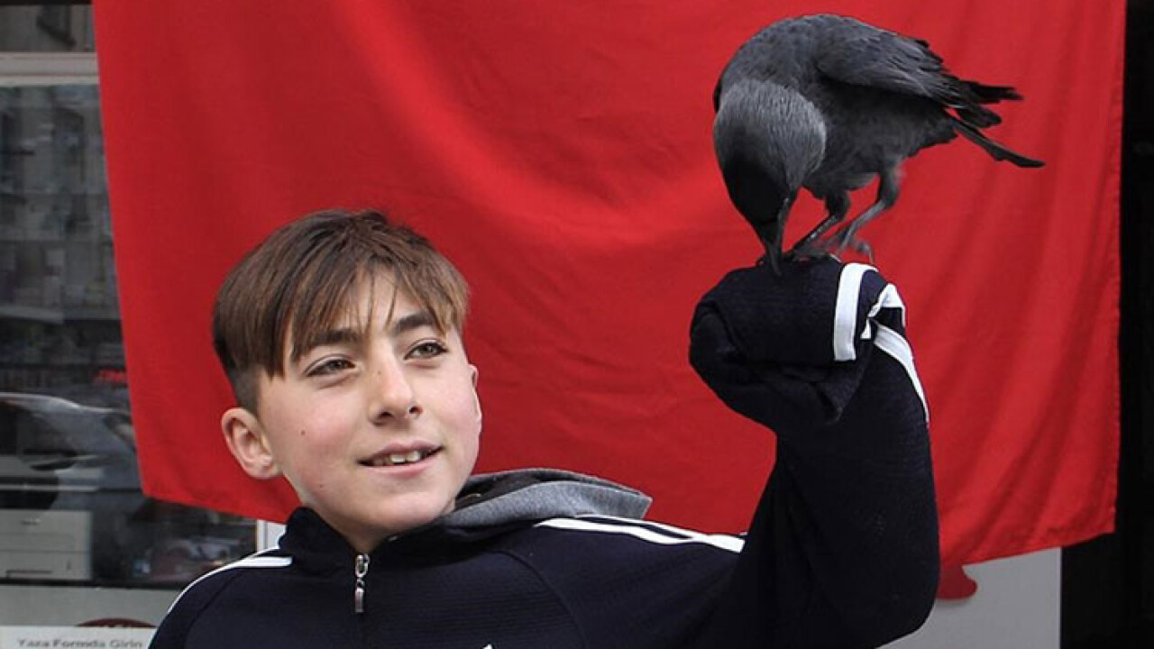 lçede esnaflık yapan Mehmet Göymen, yaklaşık bir yıl önce iş yerinin önünde yavru bir karga buldu. Göymen'in iş yerine alarak yem ve su verdiği kuş bir daha iş yerinden ayrılmadı.