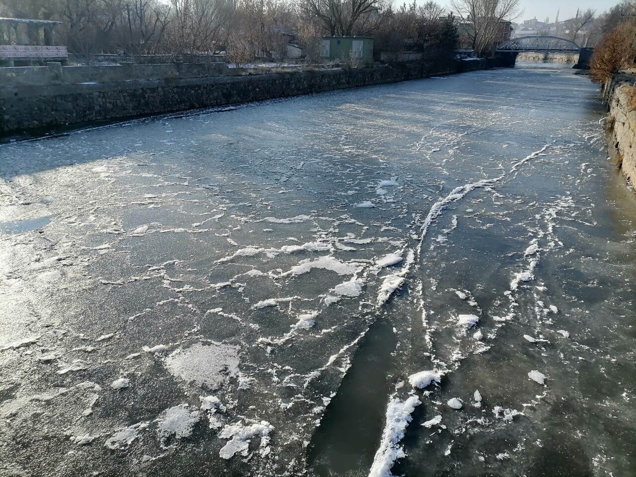 Gece hava sıcaklığının sıfırın altında 12 dereceye düştüğü kentte, bazı dere, nehir ve çeşmelerin kenarları buzlandı.