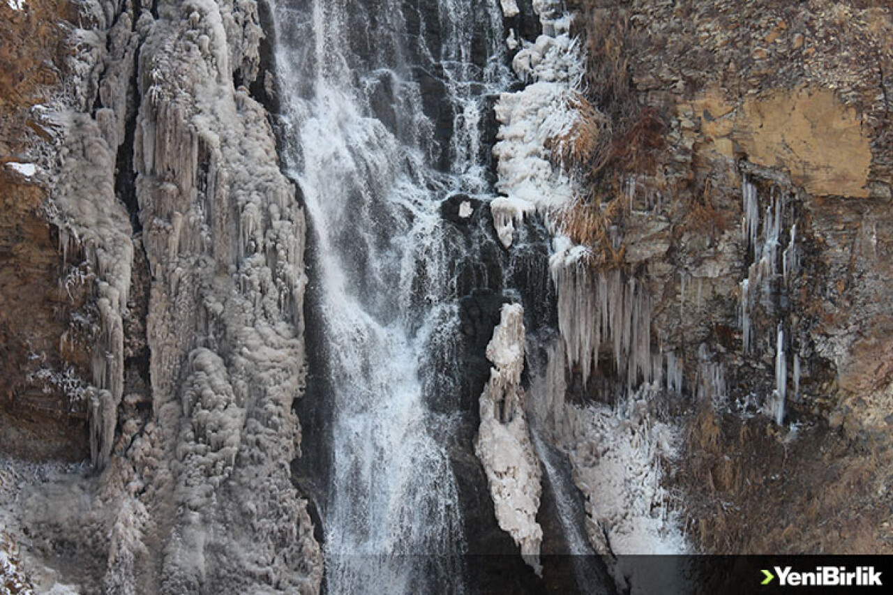 Kars-Ardahan kara yolu üzerinde bulunan ve 75 metre yükseklikten akan Susuz Şelalesi'nin de bir bölümü buzla kaplandı.