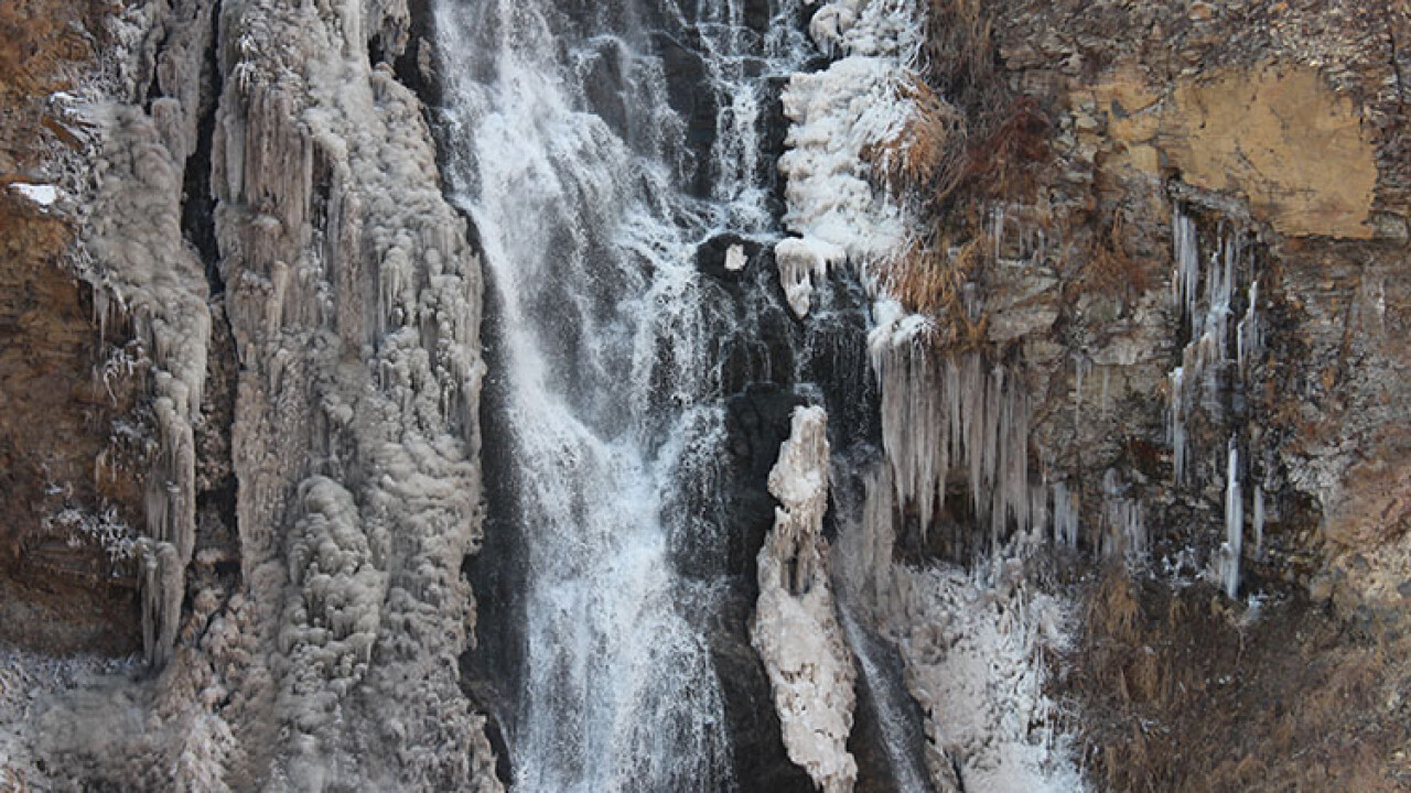 Dere, nehir ve göletlerin buzla kaplandığı ilde, bazı şelaleler kısmen dondu.