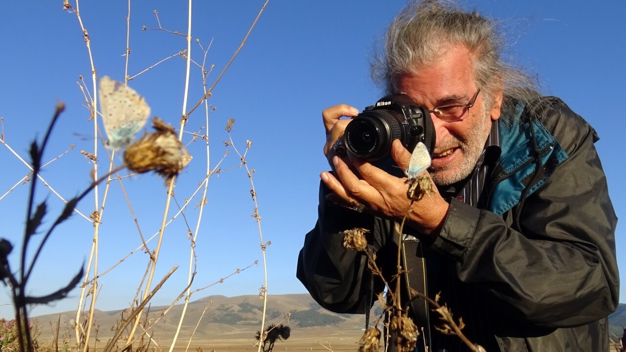 Solmaz, doğanın güzelliklerini kayıt altına almaya çalıştıklarını belirterek, "Güz mevsimine ayak uydurmaya çalışan mavi kelebekler, onlara bir anlamda durak olan eskimiş deve dikenleri ve karşımızdaki ormanın çağla yeşili sanki uhrevi bir manzaranın tezahürü gibi. Burada mavi kelebekleri amatörde olsa çekme gayreti içindeyiz. Ama bazen bu sahada bugün hayata yeni başlamış gibi yeşil otları sarı çiçekleri görme imkanımız var." dedi.