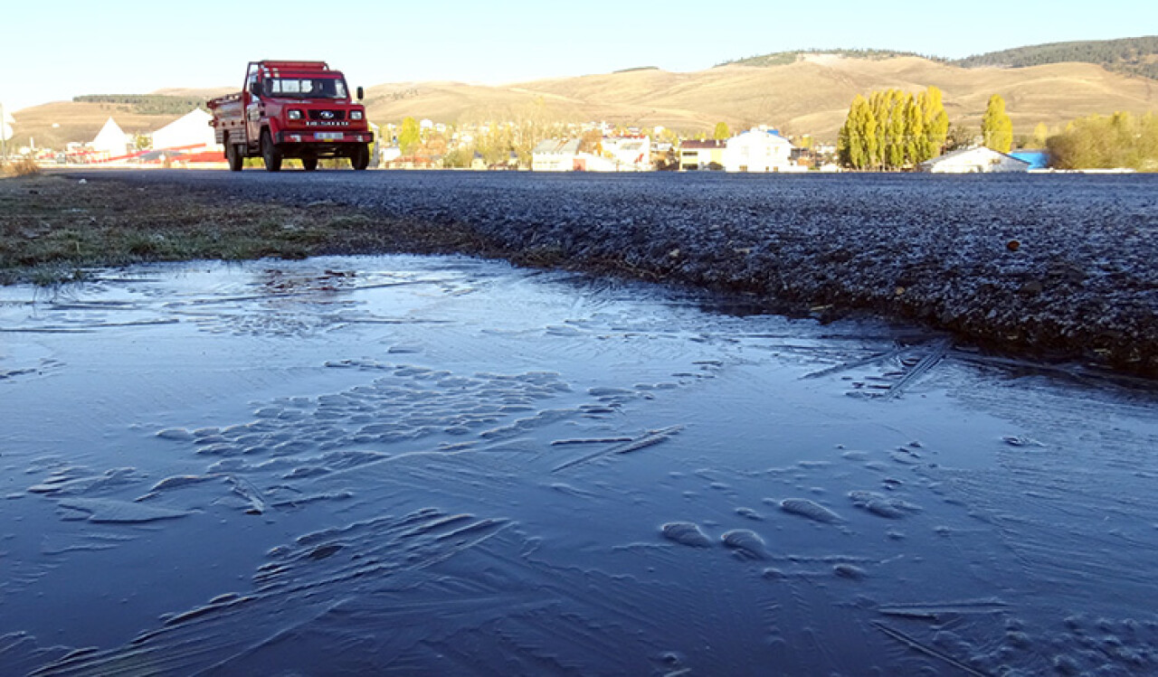 Gece hava sıcaklığının sıfırın altında 1 dereceye düştü kentte, arabaların camları buz tuttu, bina çatıları ve bitkiler kırağıyla kaplandı.
