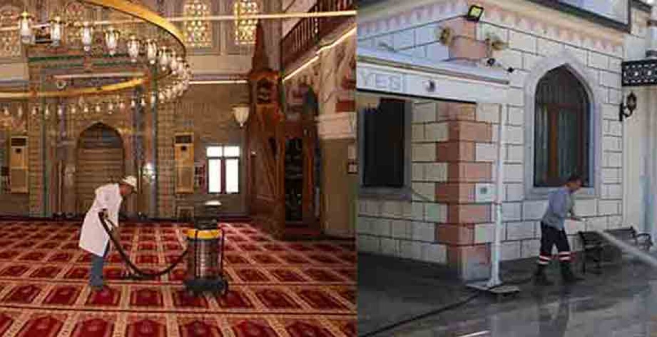 İbadethanelerin içi dışında çevresinde de çalışmaları yürüten ekipler, hem ot temizliği hem de yıkama gibi işlemleri de gerçekleştirdi. Koruyucu kıyafetler giyen ekipler, ot biçme ve temizlik işlemleriyle çevre temizliği yaparken, camilerin avluları da basınçlı su kullanılarak yıkandı. Bayrama hazırlık kapsamında çalışmalar devam ederken, genel temizlik çalışmaları da ilçe genelinde titizlikle devam ettiriliyor.