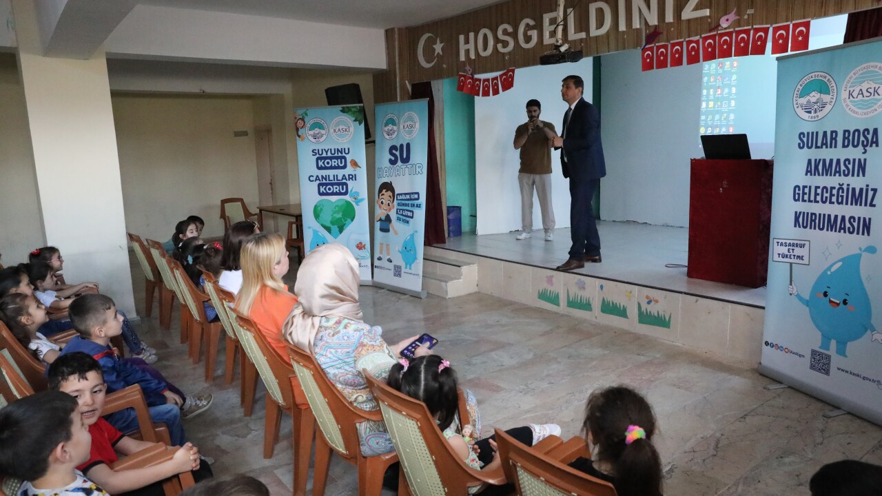 KASKİ, Fatin Rüştü Zorlu İlkokulu ve anasınıfı öğrencilerine bilinçli su tüketimi, suyun canlı hayatı için önemi, su kaynaklarının korunması, suyun evlerimize ulaşma aşaması ve su tasarrufu konularında eğitim verdi.