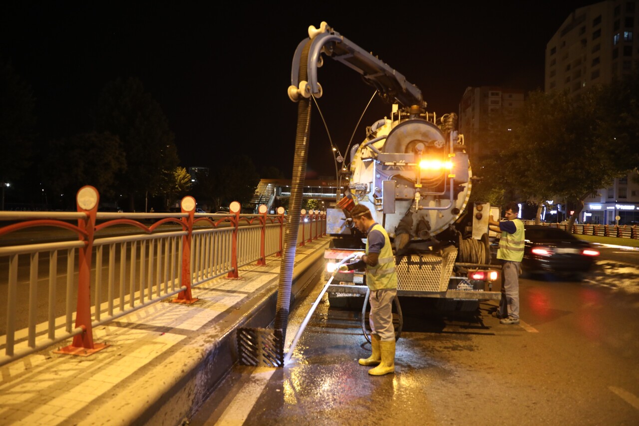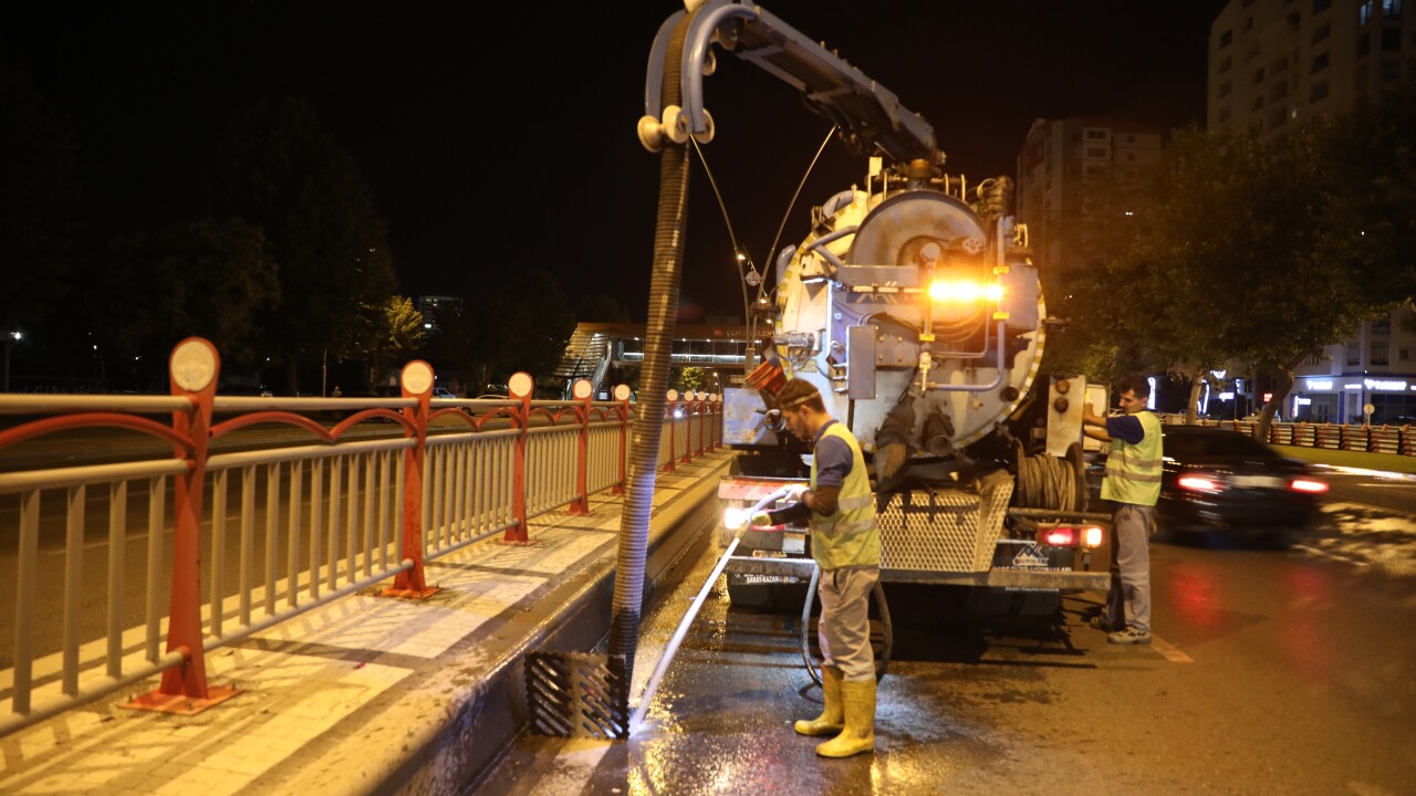 Yağmur suyu ızgara temizliğini sürdüren ekipler, gece ve gündüz şeklinde vardiyalı olarak hizmetlerine devam ederken, trafik yoğunluğunun yaşandığı bölgelerde çalışmalar gece saatlerinde yapılıyor.