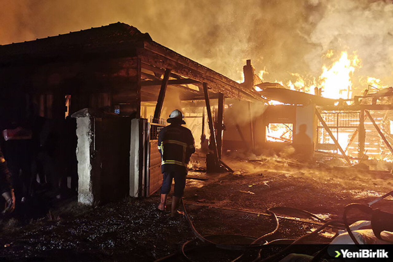 2 ev ve 1 ahırın tamamen yandığı, 2 evin de zarar gördüğü olayda 22 büyükbaş hayvan ile 3 köpek öldü.