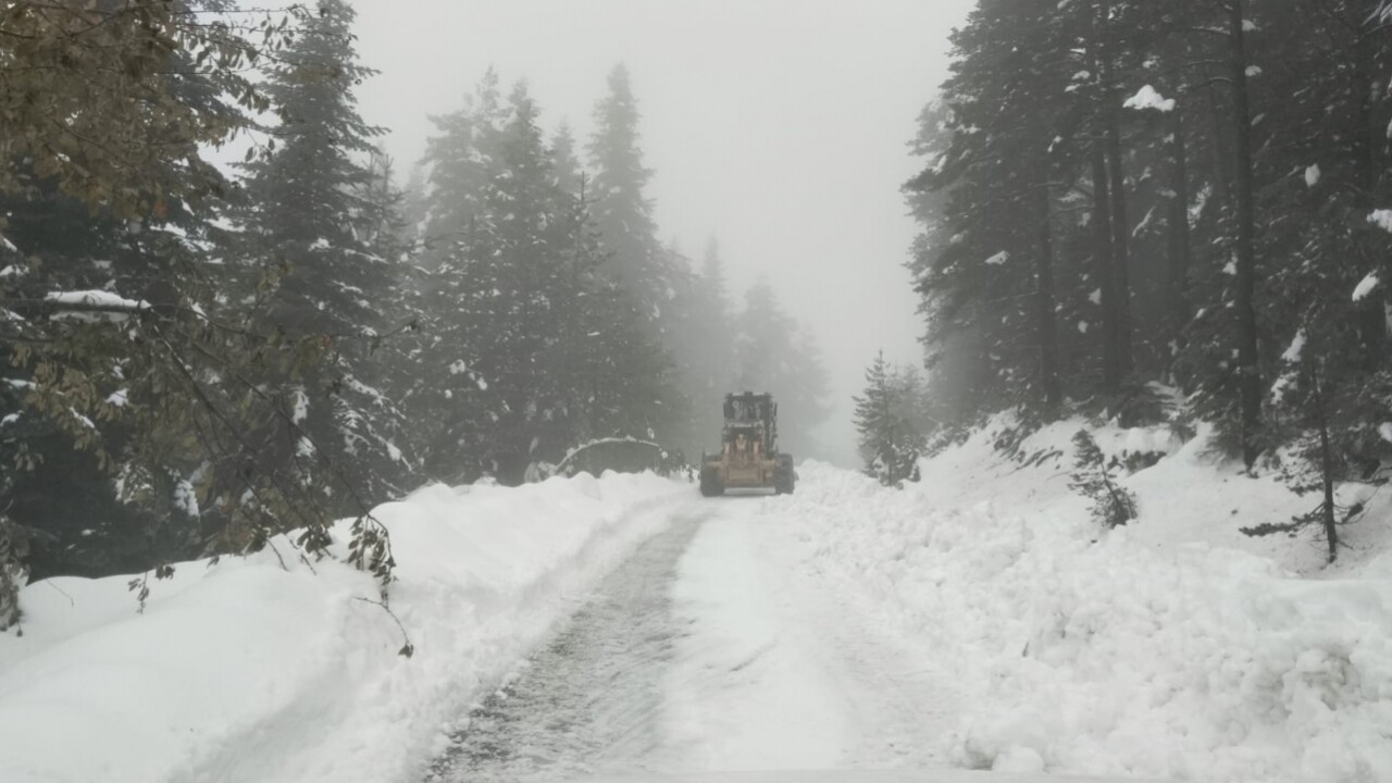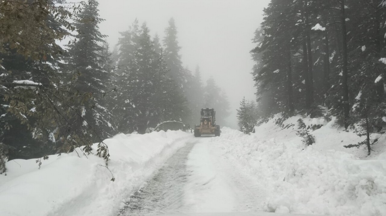 Özel İdare ekipleri kar kalınlığının 50 santimetreye ulaştığı Devrekani Şenlik Radar Yolunda kar mücadelesini sürdürüyor. Yol greyderlerle açılmaya çalışılıyor.