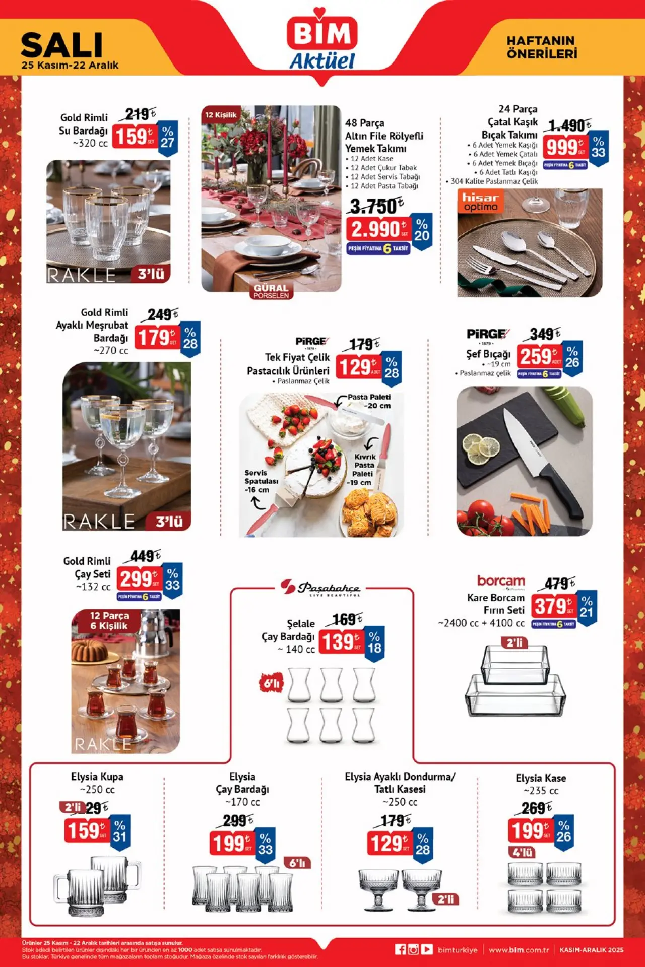 Bu haftanın yeni Bim katalog fırsatları, hem mutfağını yenilemek isteyenler hem de yılbaşı öncesi indirim kovalayan tüketiciler için oldukça geniş seçenekler sunuyor. Tüm ürünler kampanya dönemi boyunca mağazalarda yer alacak.