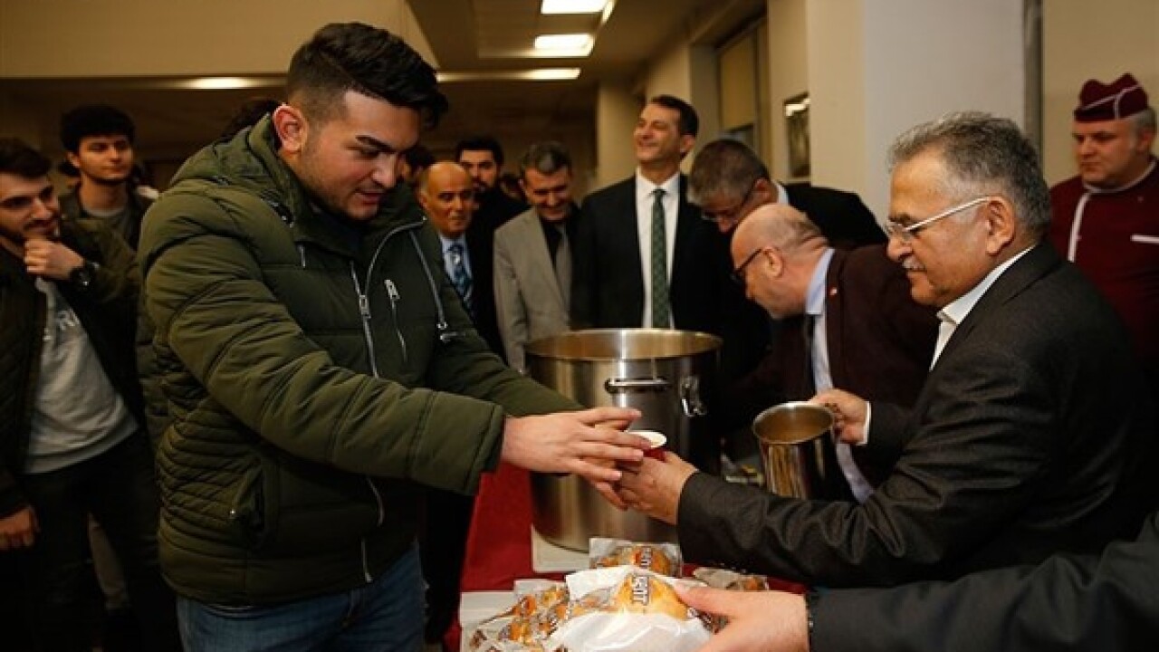 Kayseri Büyükşehir Belediyesi tarafından, devlet ve vakıf üniversitelerinin yanı sıra, kütüphanelerde ücretsiz olarak sıcak çorba ve çay ikramı yapılıyor.