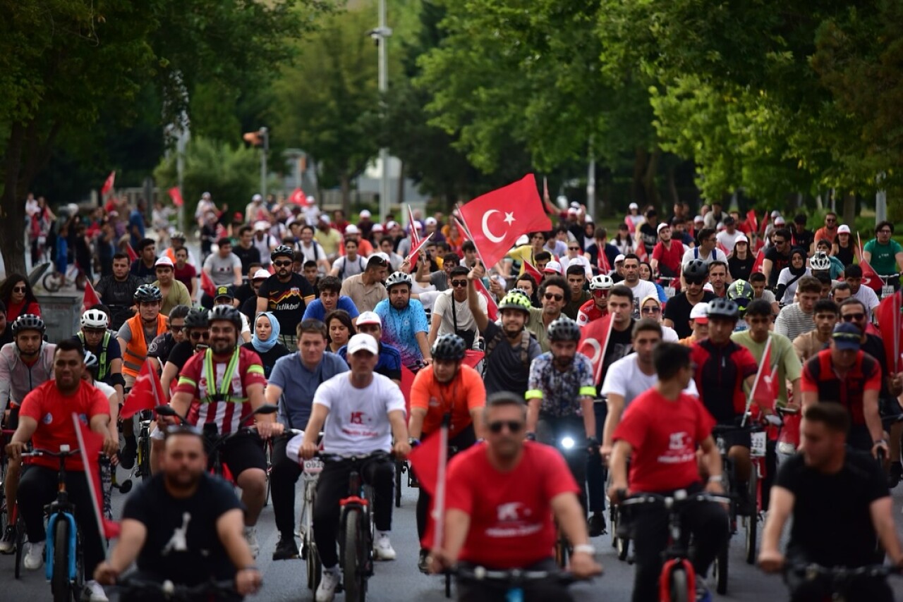 15 Temmuz Demokrasi ve Milli Birlik Günü’ne özel etkinlikte, RHG Enertürk Enerji Stadyumu’ndan başlayan bisiklet turu etkinliği, Recep Tayyip Erdoğan Millet Bahçesi’nde son buldu.