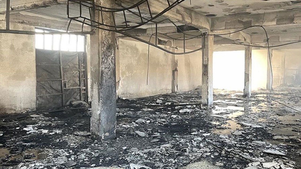 Soğutma çalışmalarının devam ettiği fabrika ve içeride bulunan malzemeler kullanılamaz hale geldi.