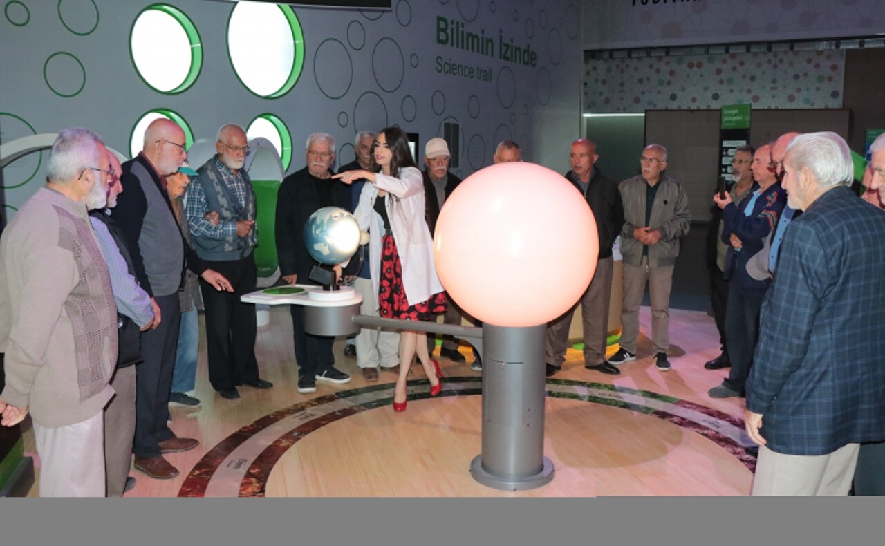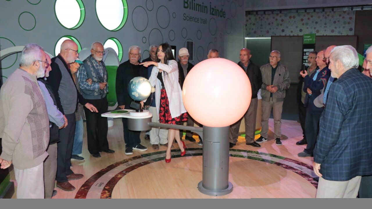 Dünya Yaşlılar Günü dolayısıyla düzenlenen etkinliğe katılan yaşlılar, Bilim Merkezi tesis sorumlusu Şenay Kırkar ve eğitmenler tarafından karşılandı.